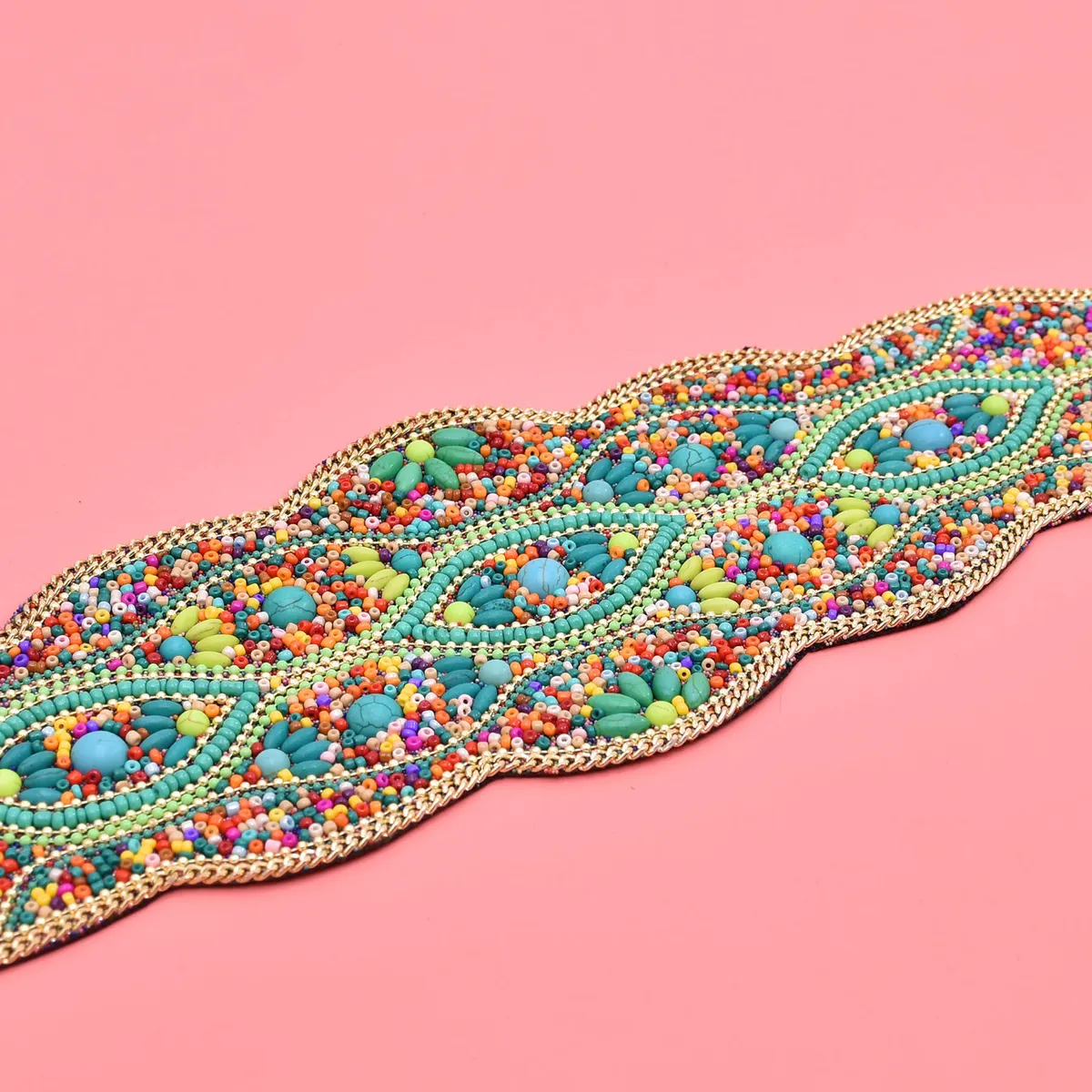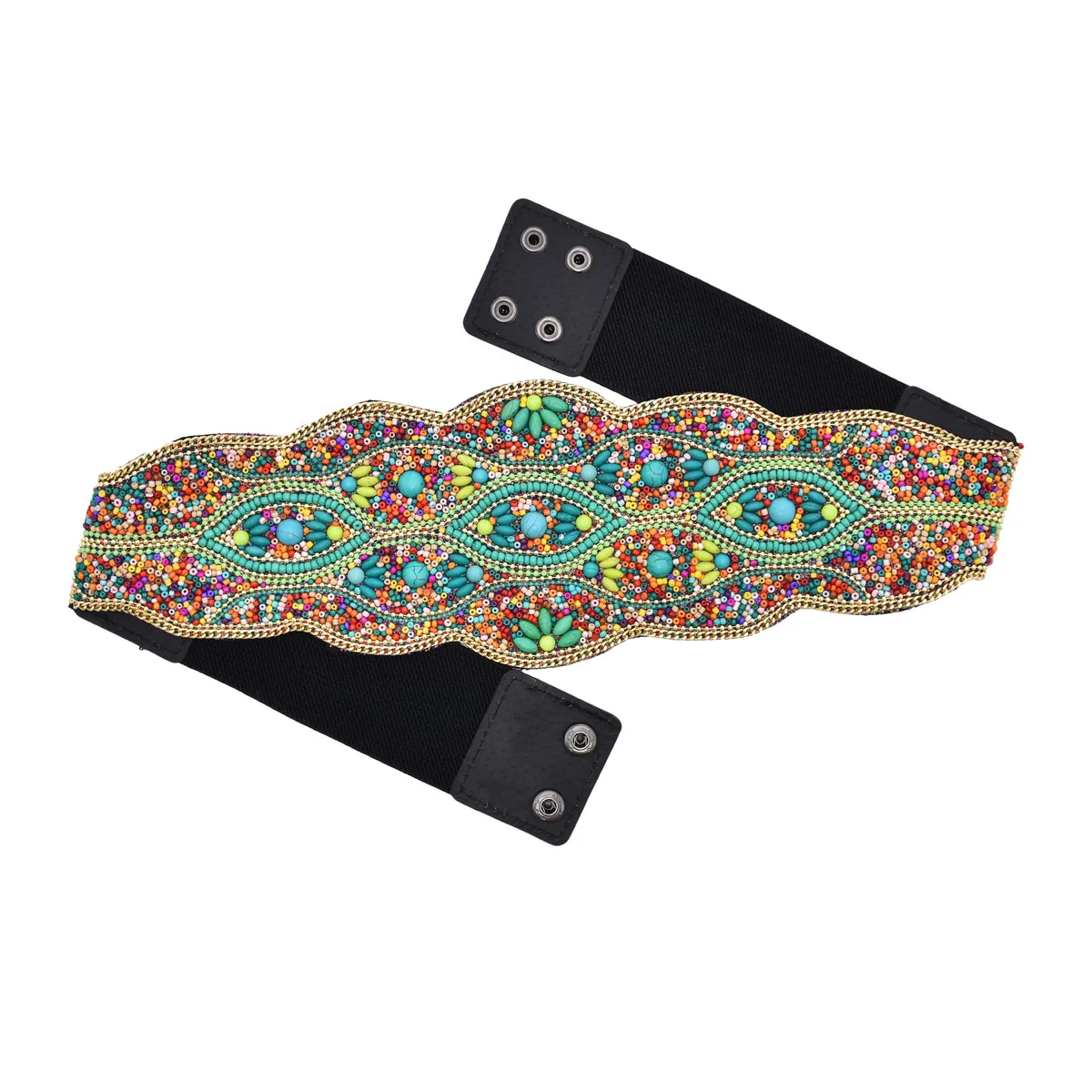 衣都精品- 新款民族風彩色米珠松石百搭寬腰帶