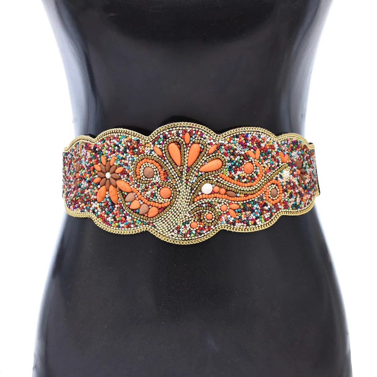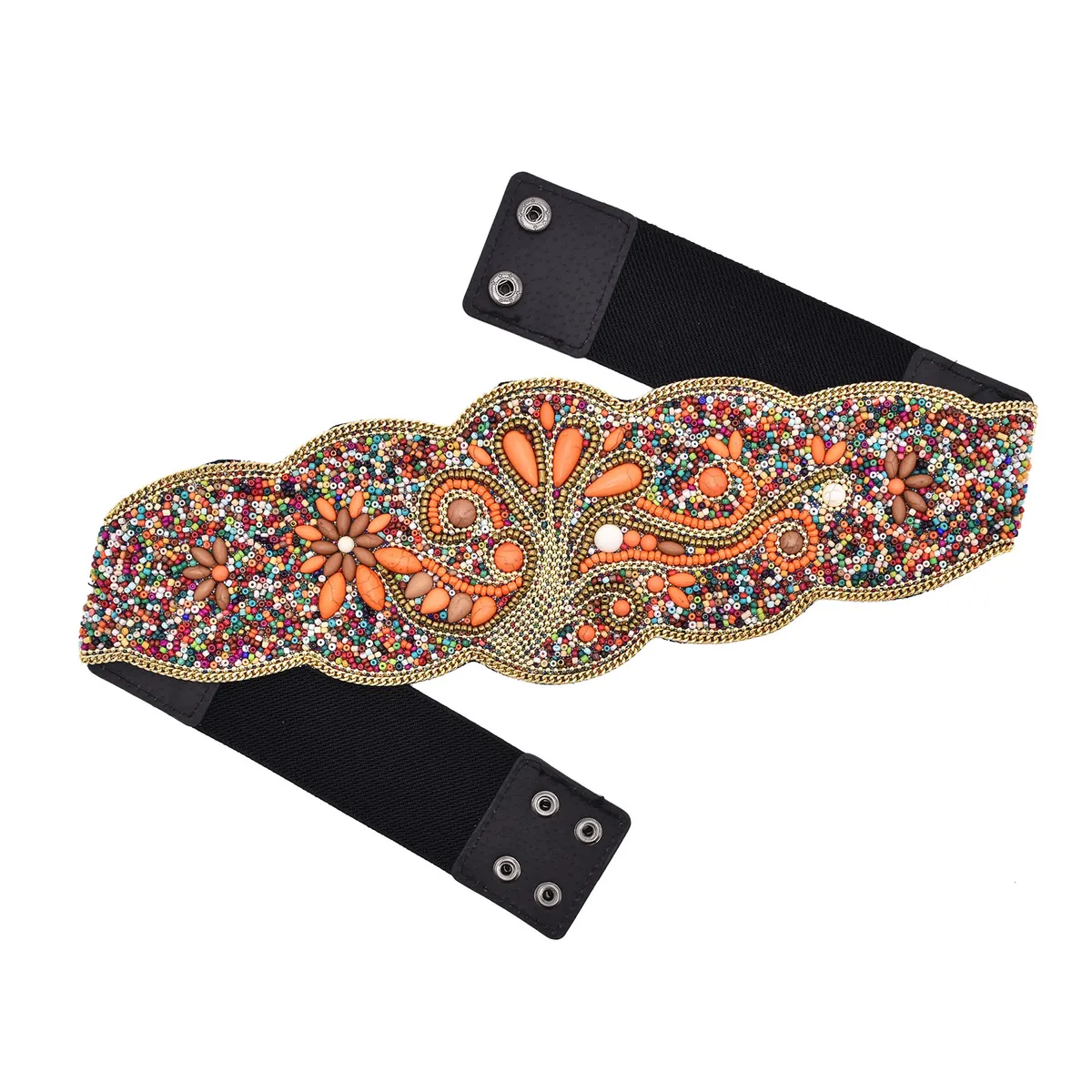 衣都精品- 新款民族風彩色米珠松石百搭寬腰帶