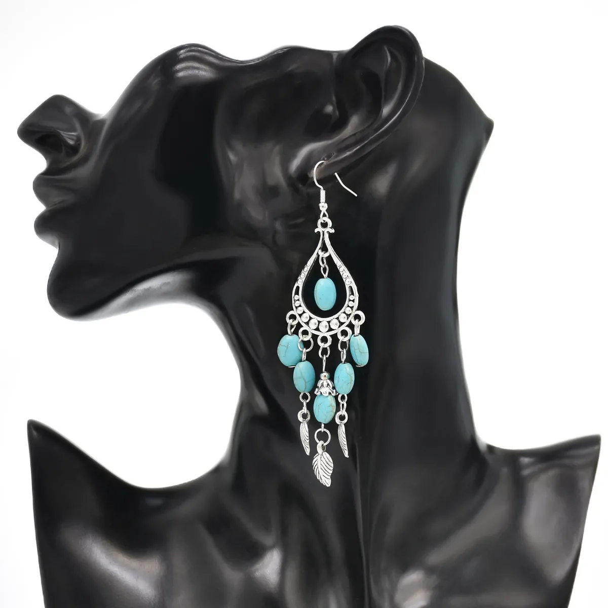 衣都精品- 新款波西米亞復古長羽毛葉子耳環