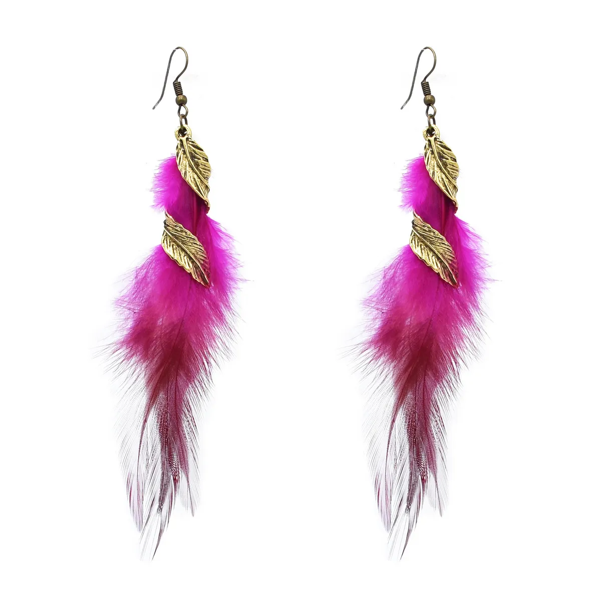衣都精品- 新款波西米亞復古合金樹葉流蘇耳環