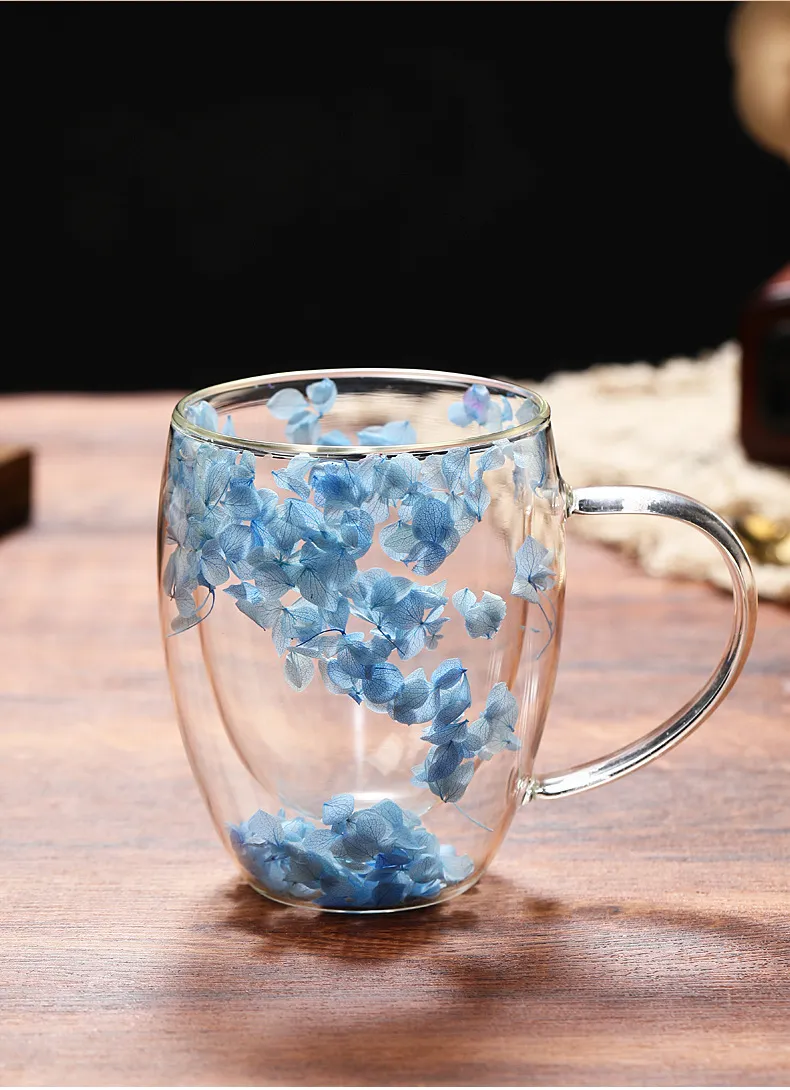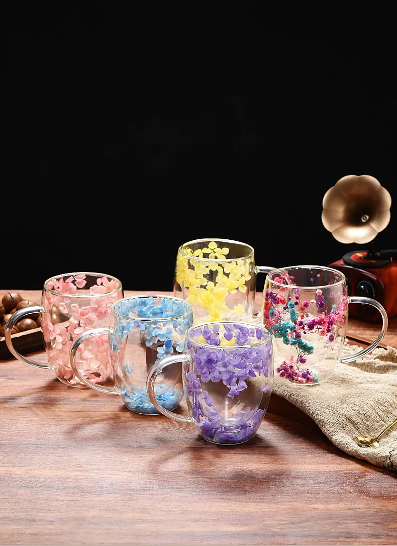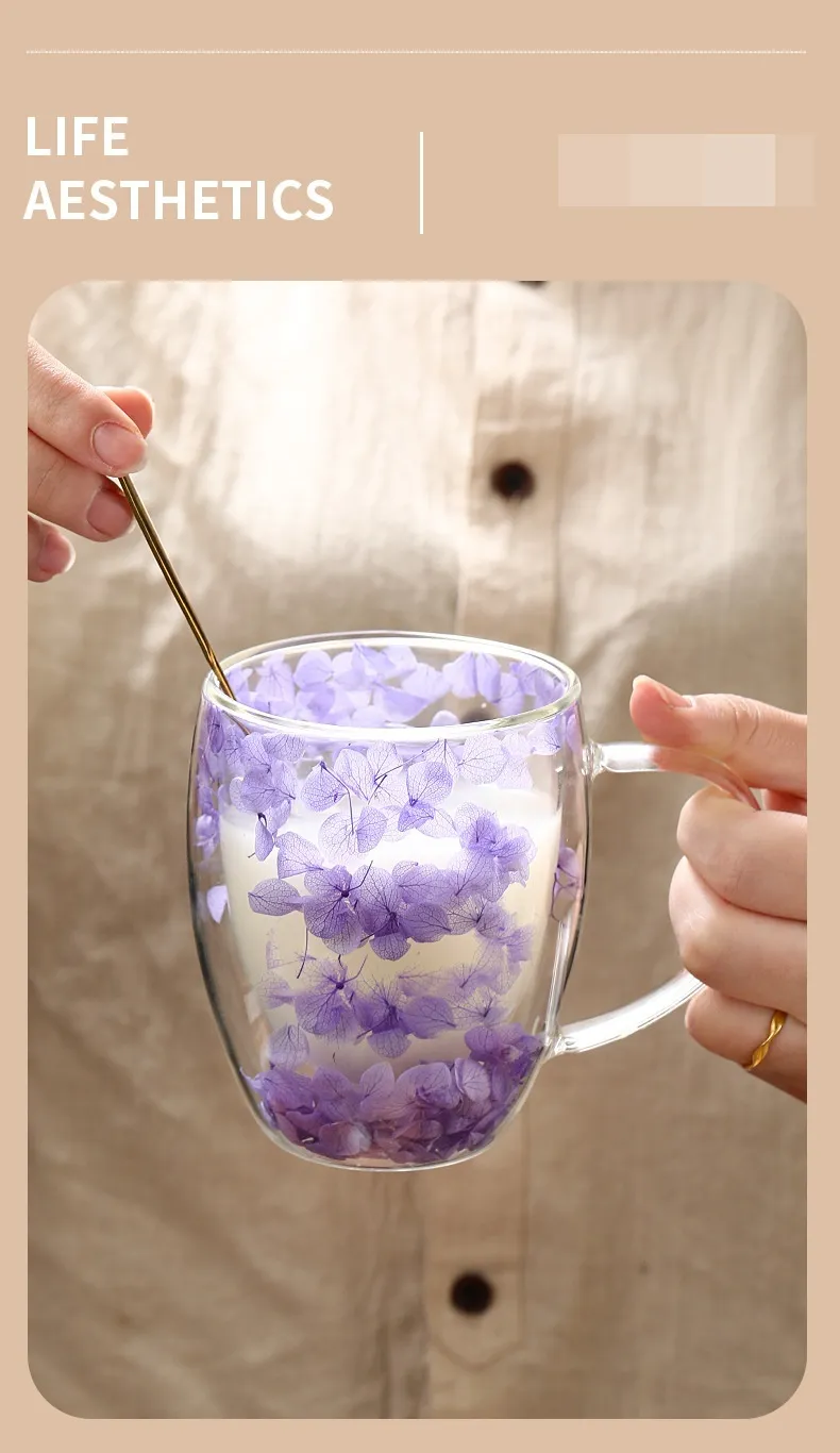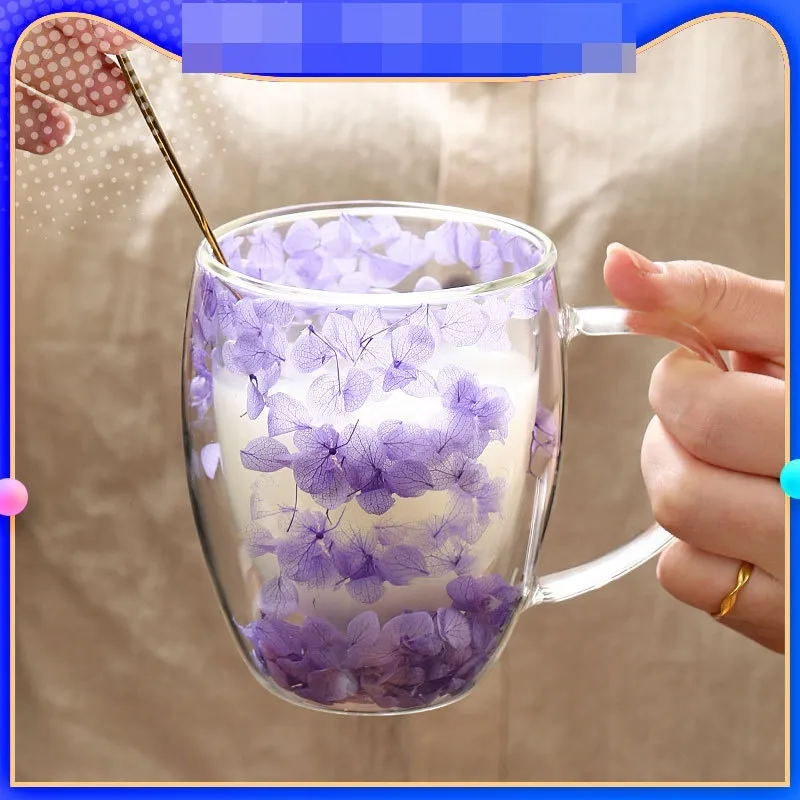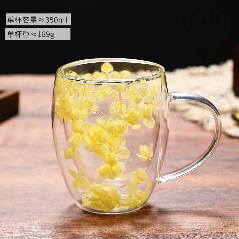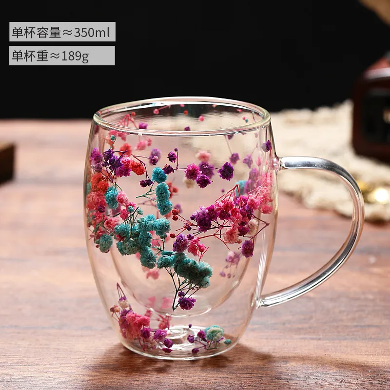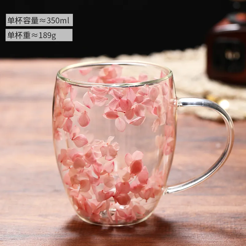 衣都精品- 新款網紅花瓣流沙真花雙層玻璃杯