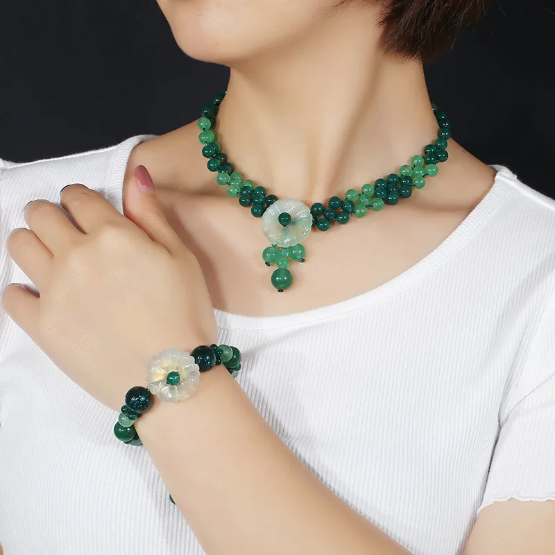 衣都精品- 新款復古民族風瑪瑙琉璃短款鎖骨項鍊+手鏈套裝