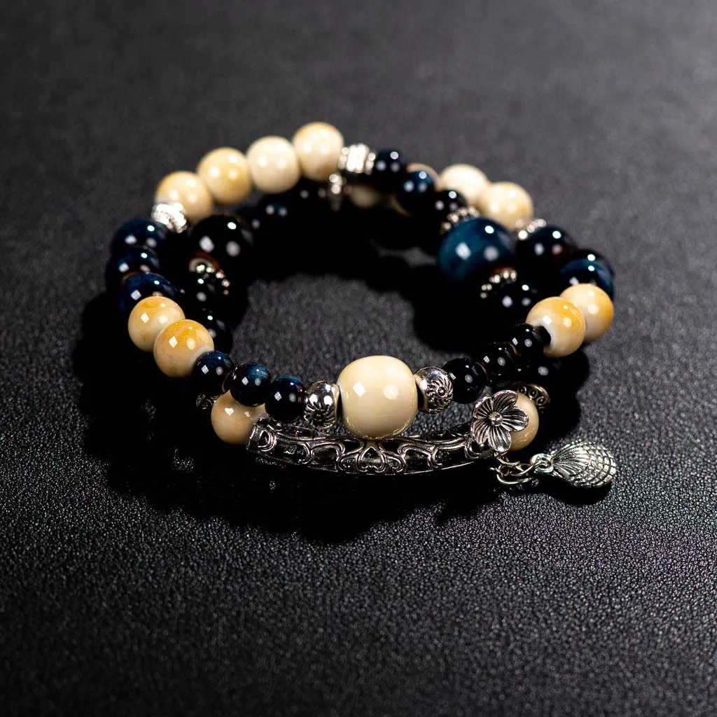 衣都精品- 新款民族風復古雙層陶瓷串珠手鍊