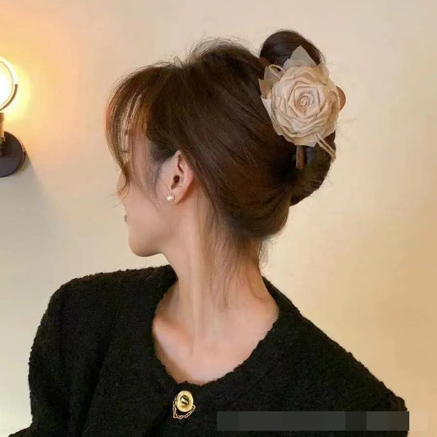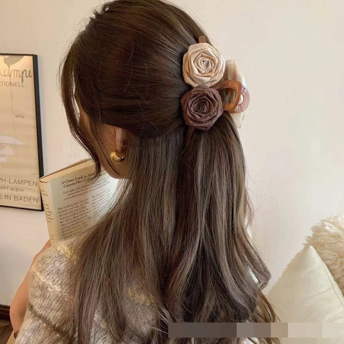 衣都精品- 新款高級感雙玫瑰花後腦勺拼色抓夾