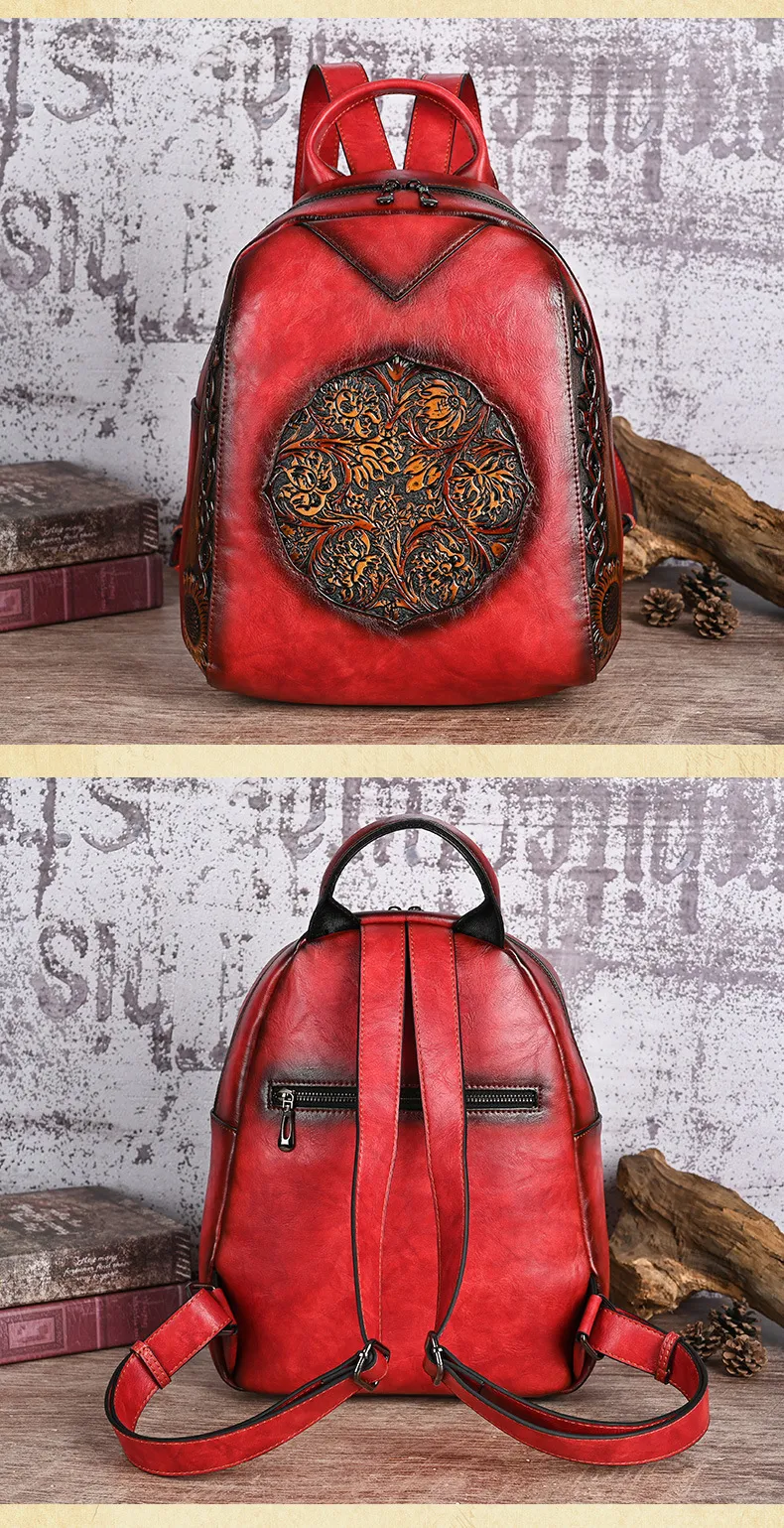衣都精品- 新款復古中國風唐朝壓花雙肩包