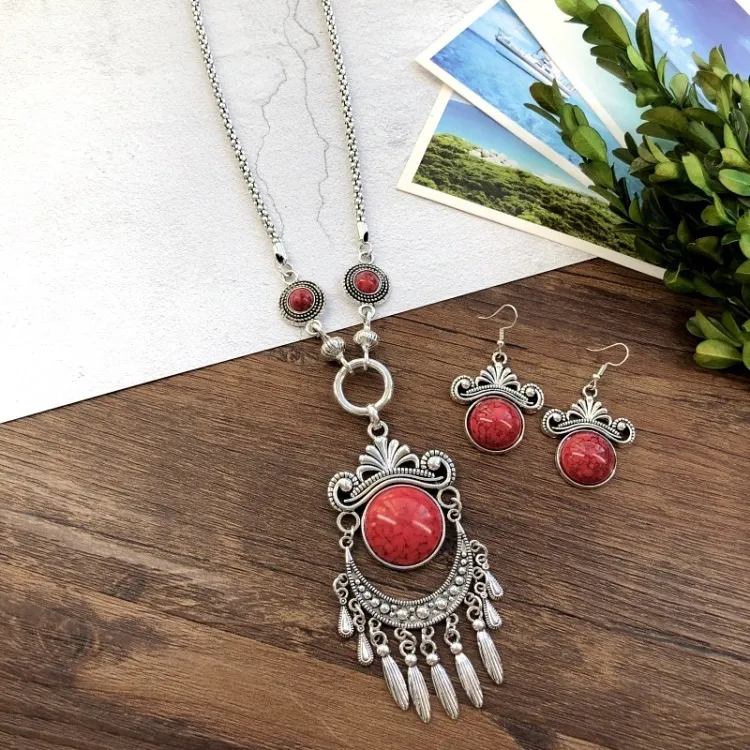 產品顏色 : C款綠-項鍊+耳環,D款綠-項鍊+耳環,A款藍-項鍊+耳環,B款紅-項鍊+耳環