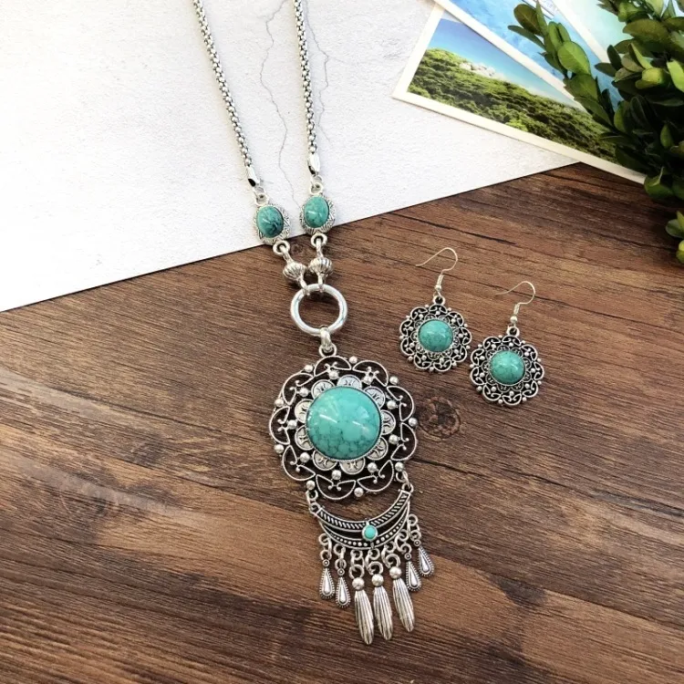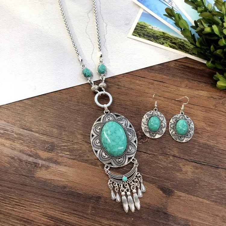 衣都精品- 新款個性氣質復古長版松石項鍊
