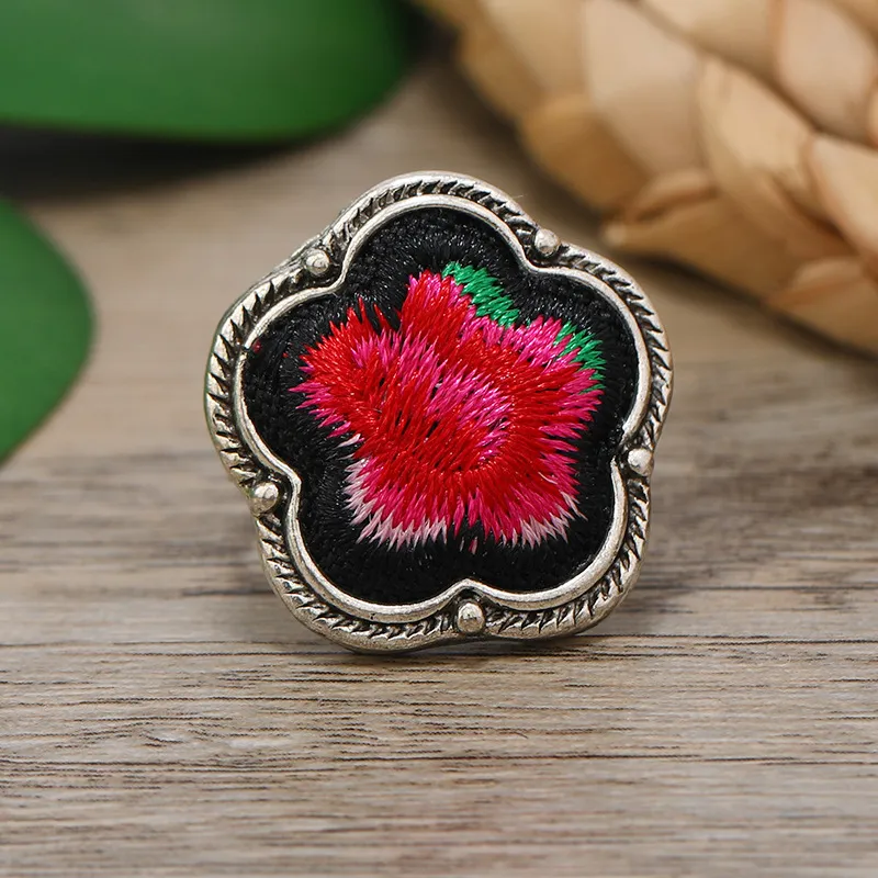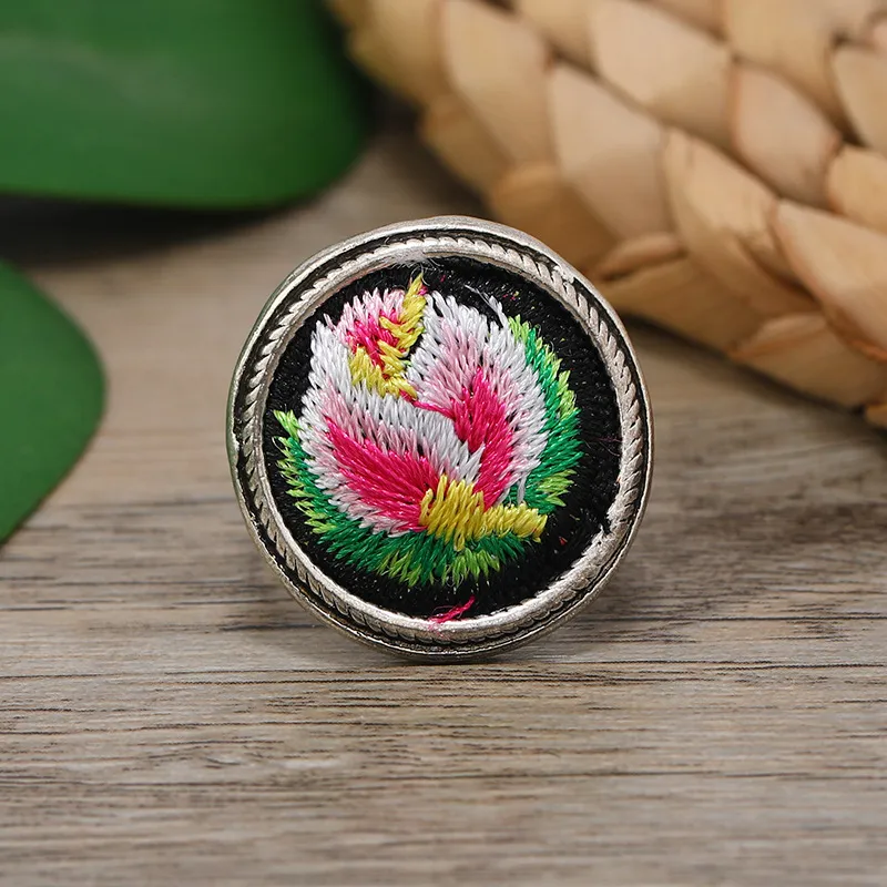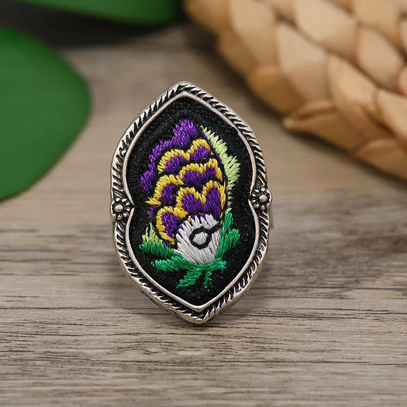衣都精品- 新款民族風手工苗銀刺繡復古戒指