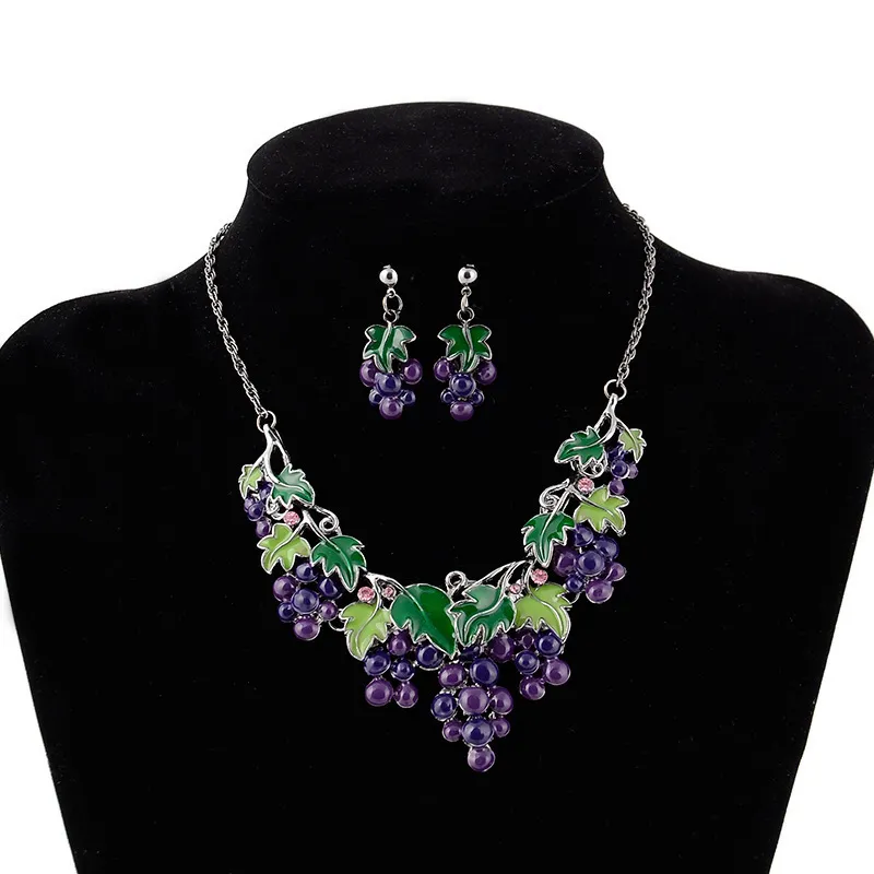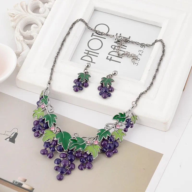 衣都精品- 新款歐美高品質時尚葡萄項鍊+耳環套裝