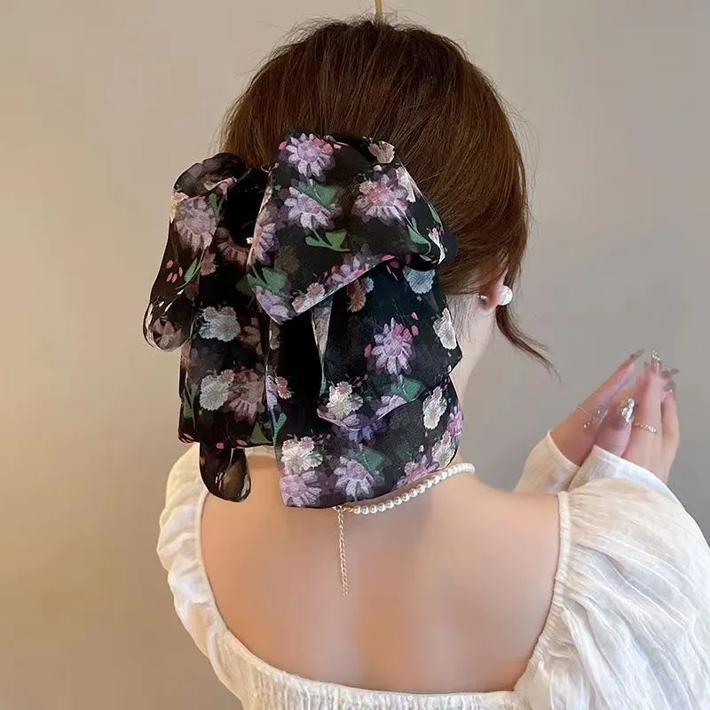 衣都精品- 新款韓版網紅碎花超仙氣質蝴蝶結髮夾