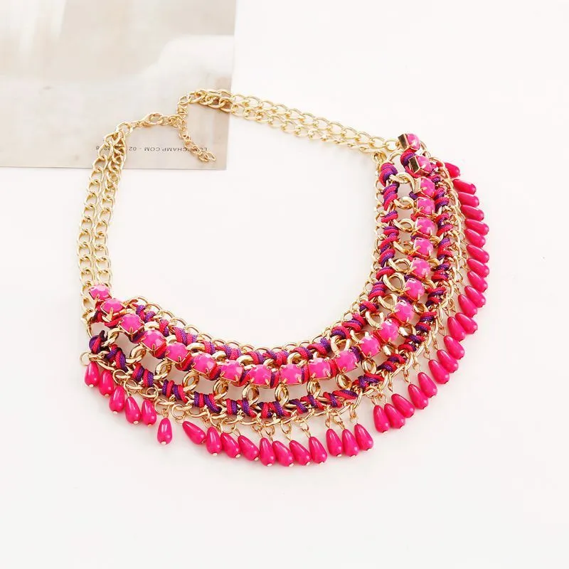 衣都精品- 新款歐美貴氣波西米亞多層編織水滴項鍊