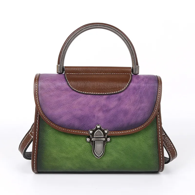 衣都精品- 新款頭層牛皮人工擦色復古中國風單肩斜挎包