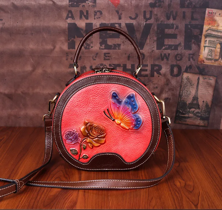 衣都精品- 新款頭層牛皮蝶戀花復古中國風單肩斜挎化妝包