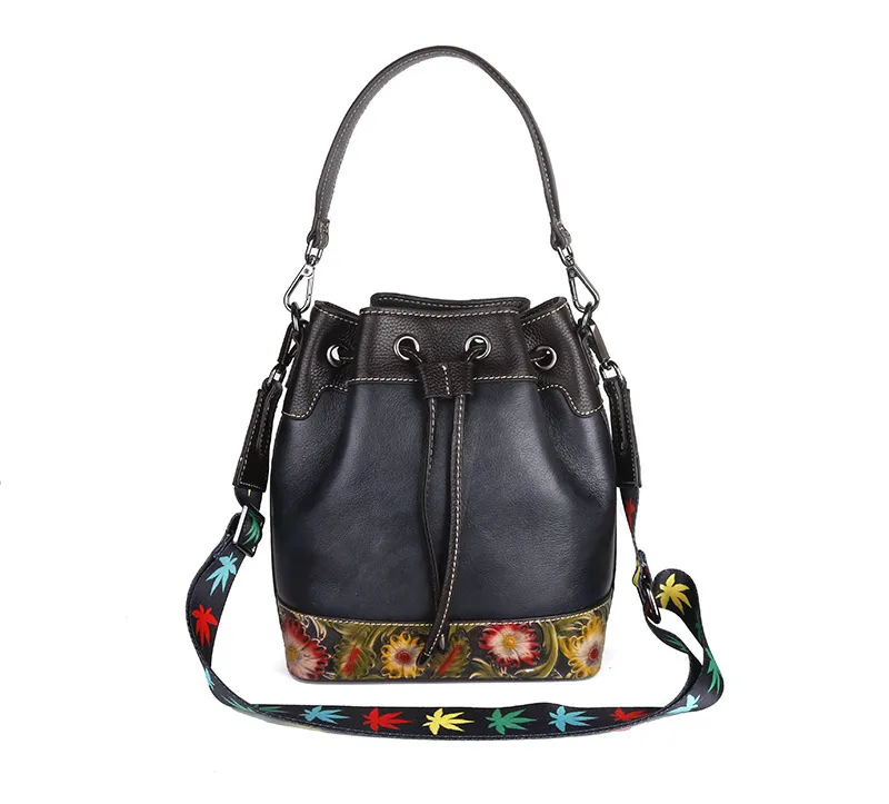 衣都精品- 新款頭層牛皮復古歐美單肩斜挎水桶包