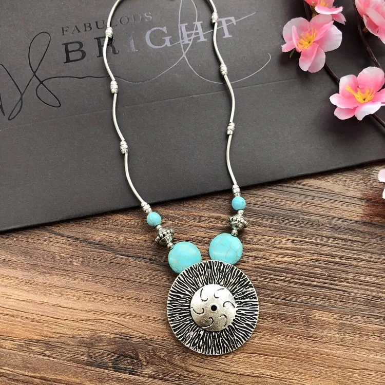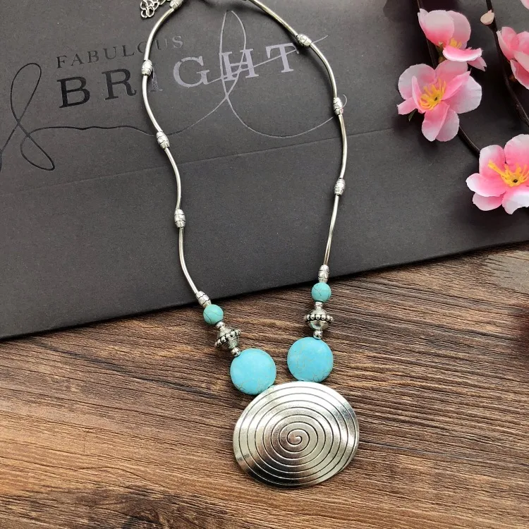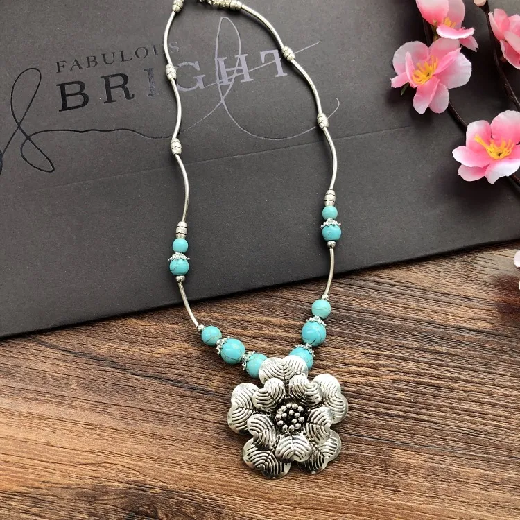 衣都精品- 新款歐美民族風手工藏銀松石短款項鍊