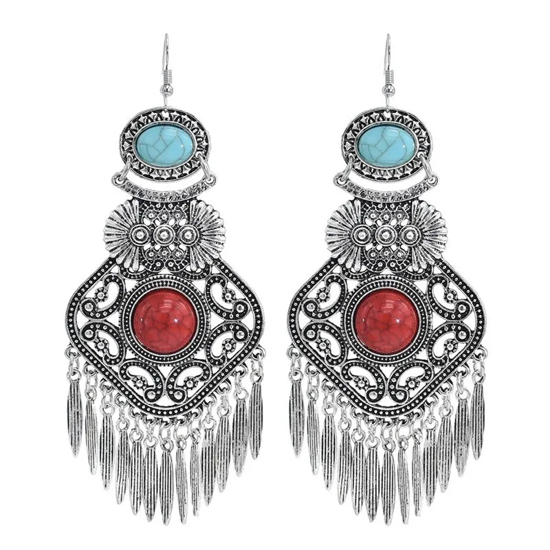 衣都精品- 新款藏式民族風長款流蘇誇張耳環