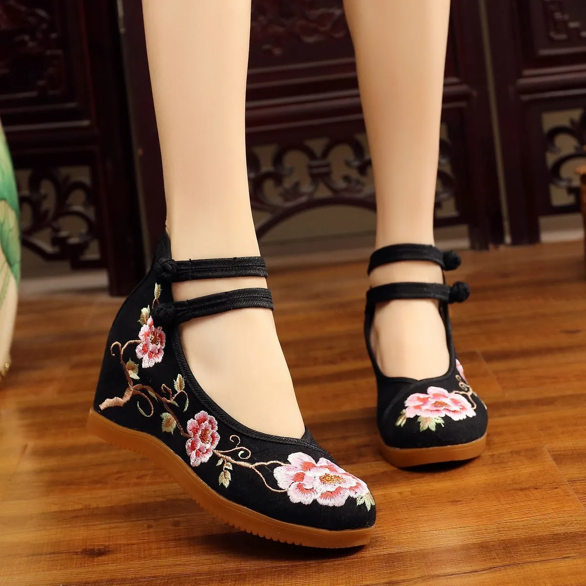衣都精品- 新款民族風搭扣內增高繡花布鞋