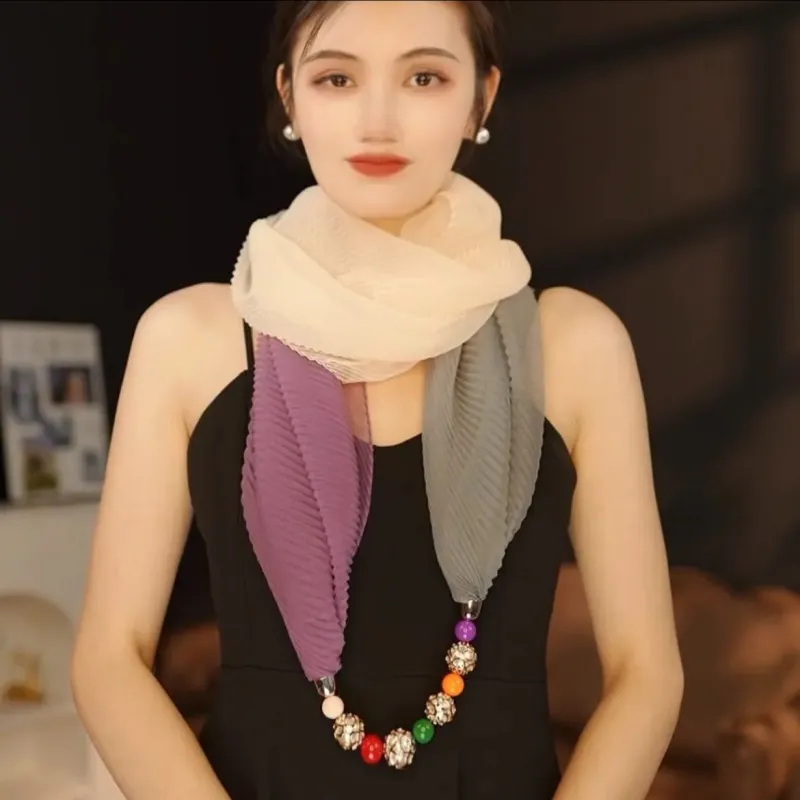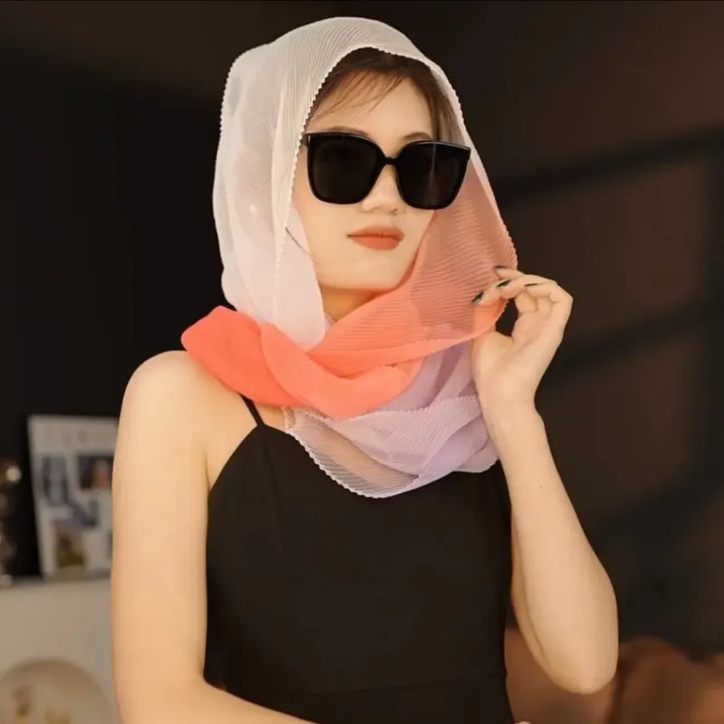衣都精品- 新款多色拼接氣質百搭夏季多功能絲巾
