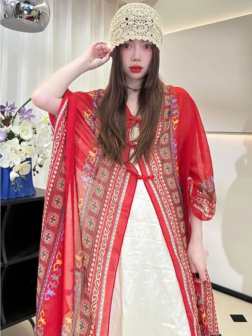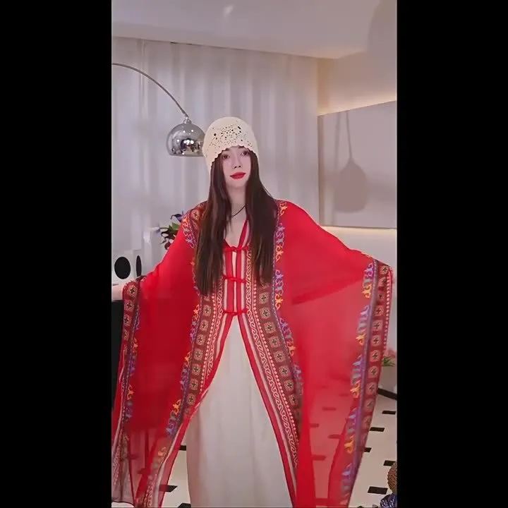 衣都精品- 新款民族風防曬薄款手工盤扣披肩