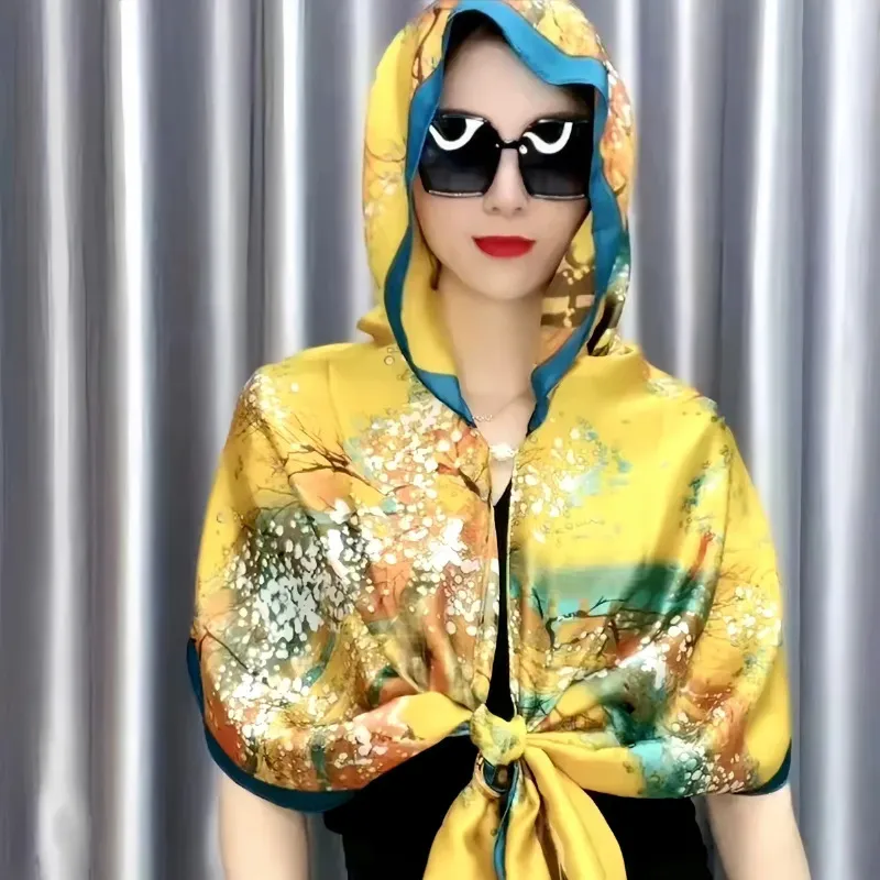 衣都精品- 新款韓版麗錦緞磁吸扣連帽披肩