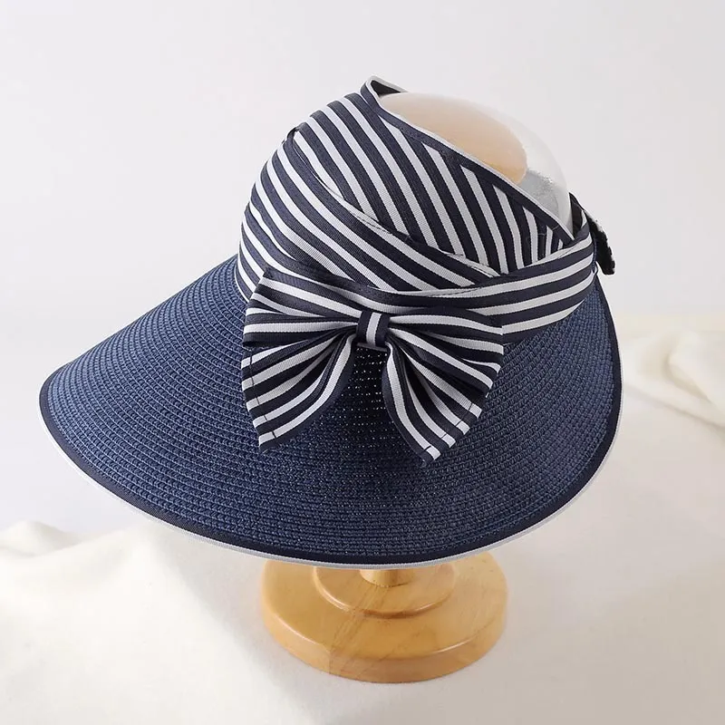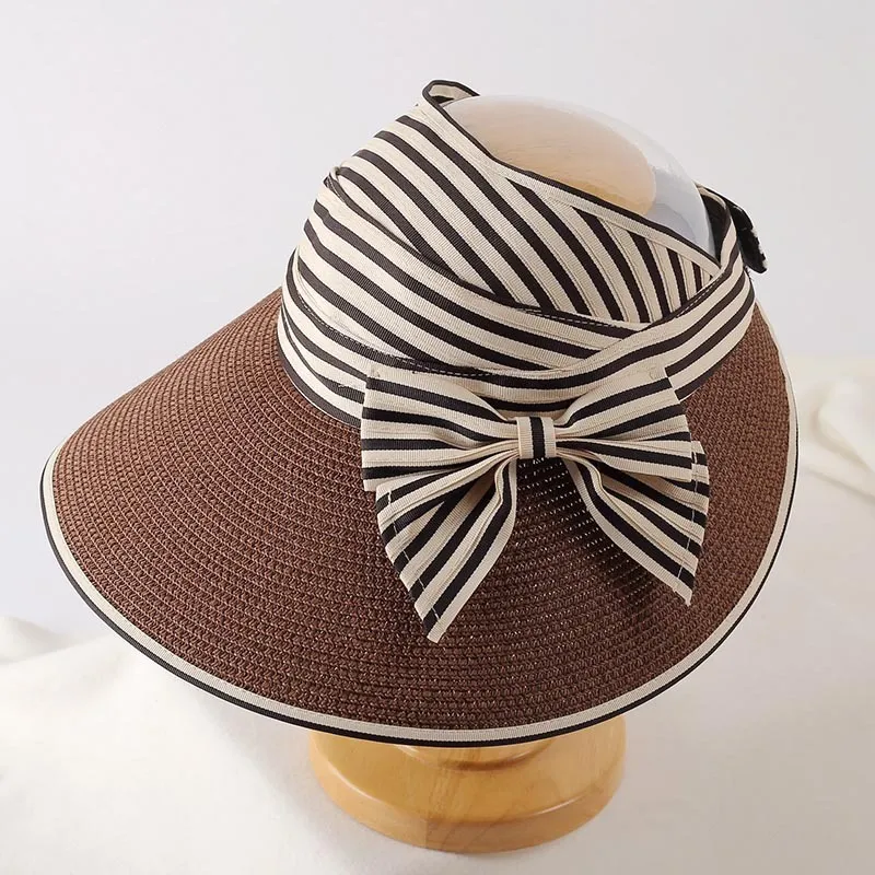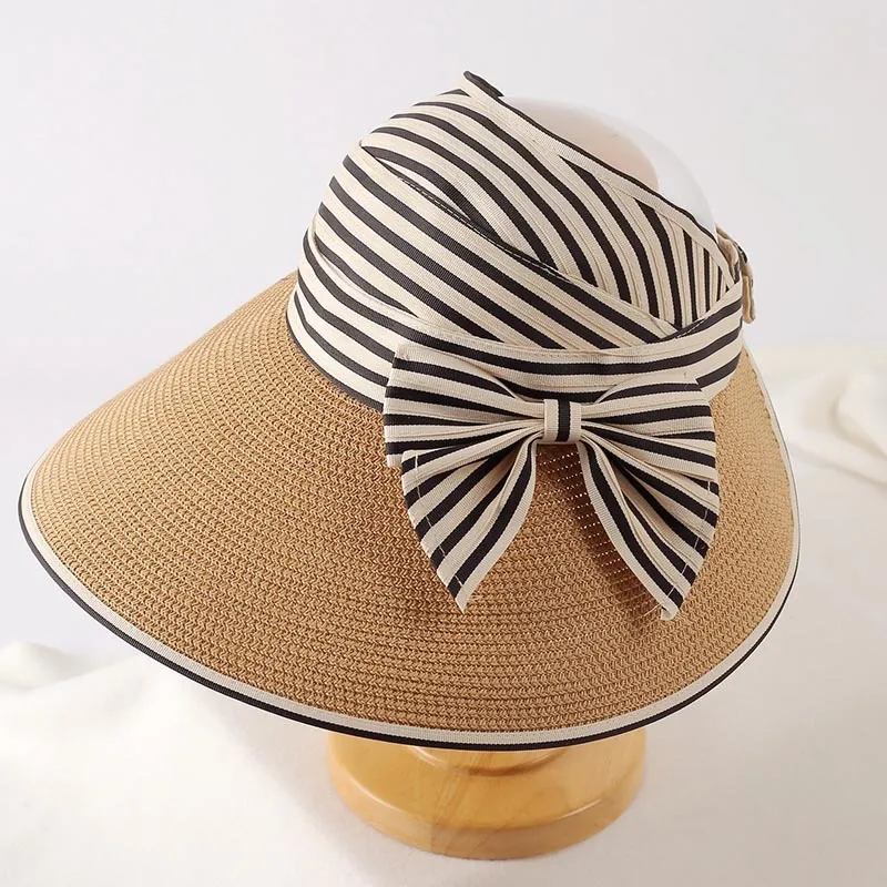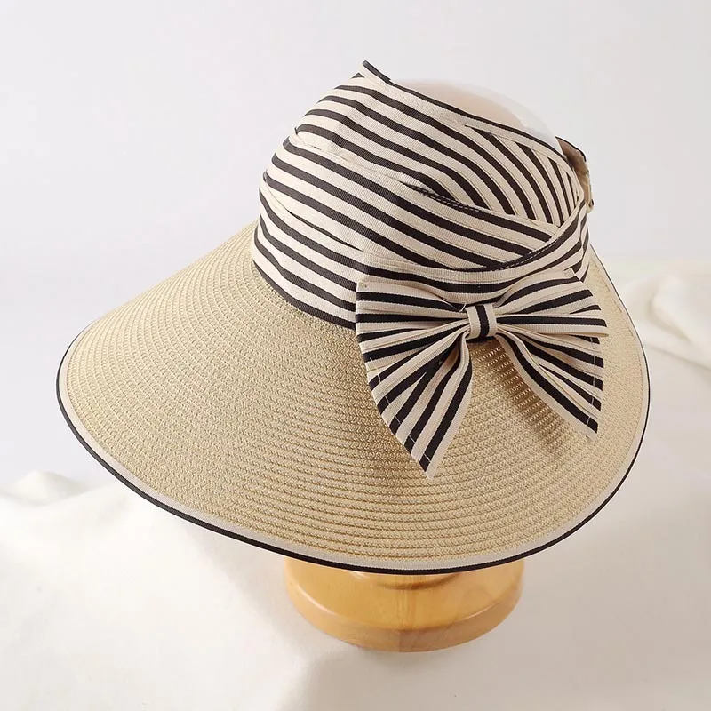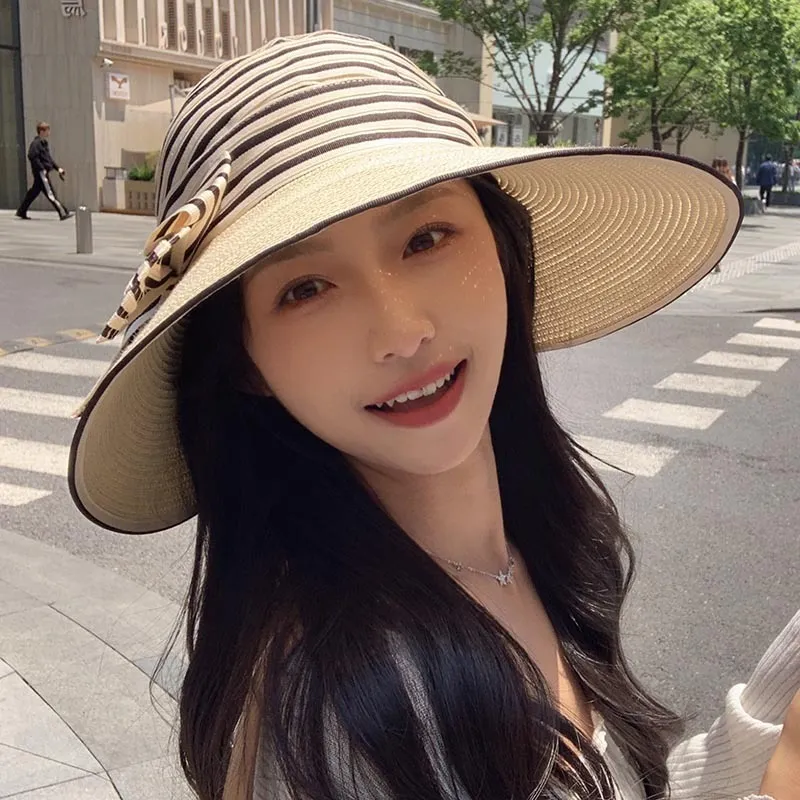 衣都精品- 新款日系草編條紋空頂遮陽帽