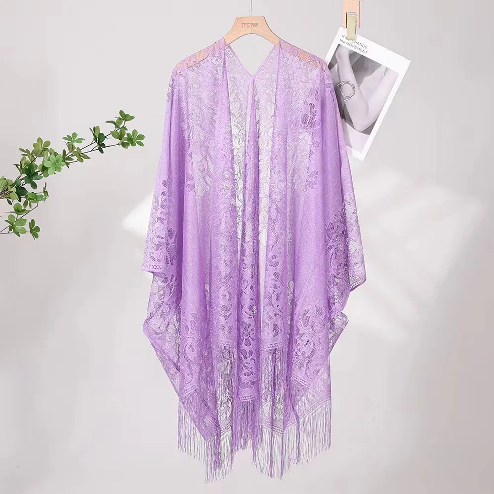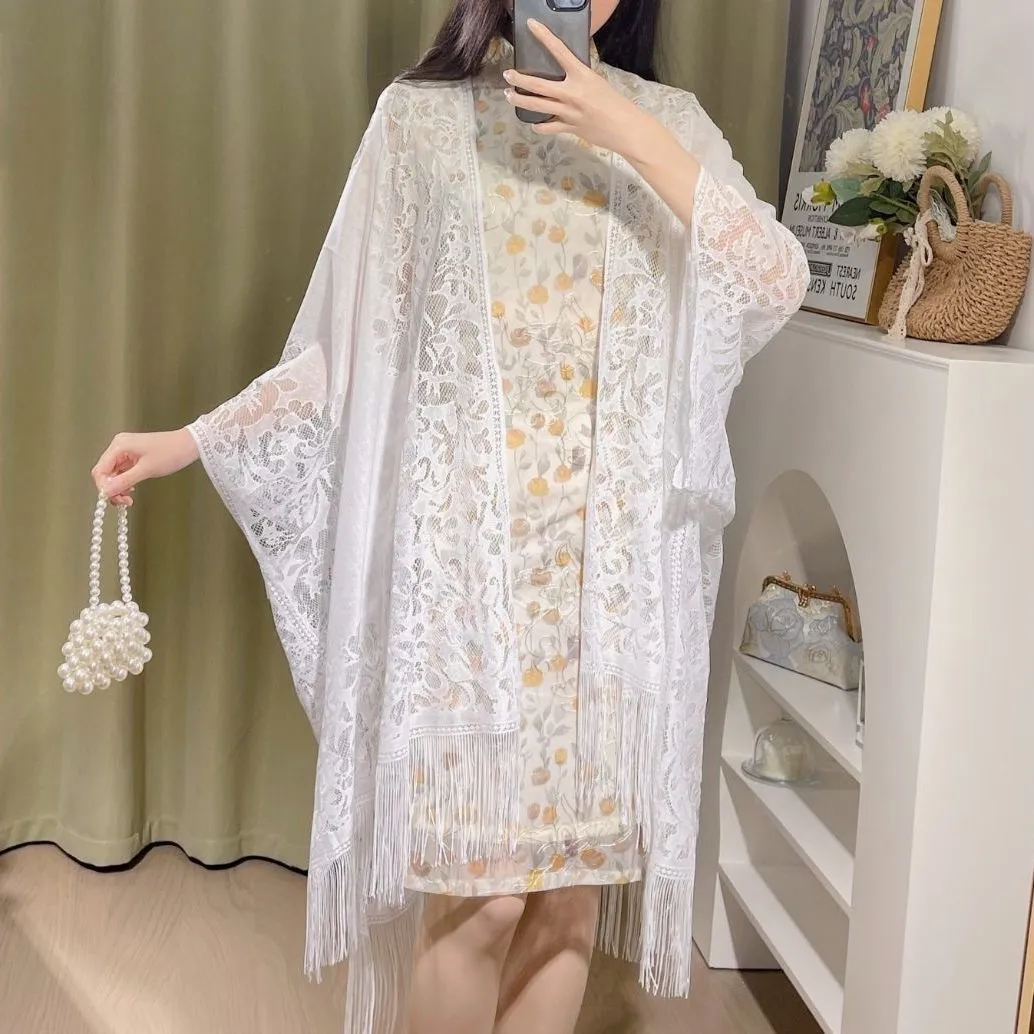 衣都精品- 新款薄款氣質蕾絲鏤空流蘇古風披肩