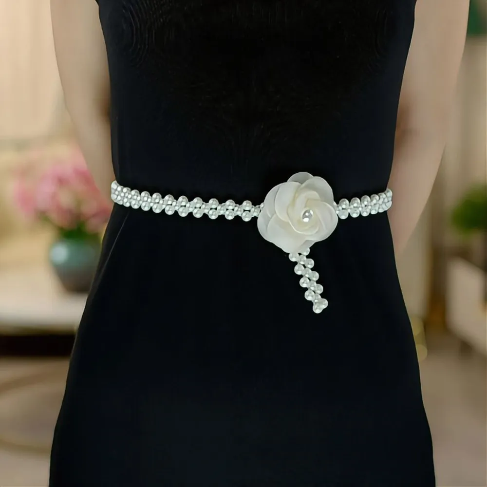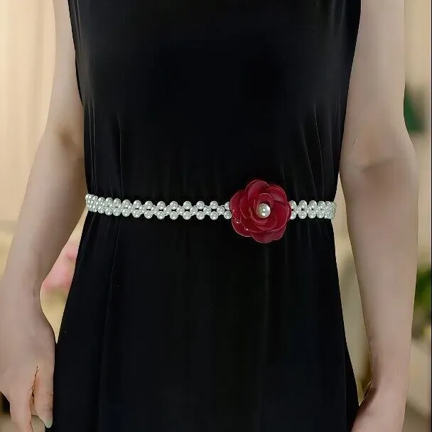 衣都精品- 新款百搭山茶花氣質珠珠腰帶