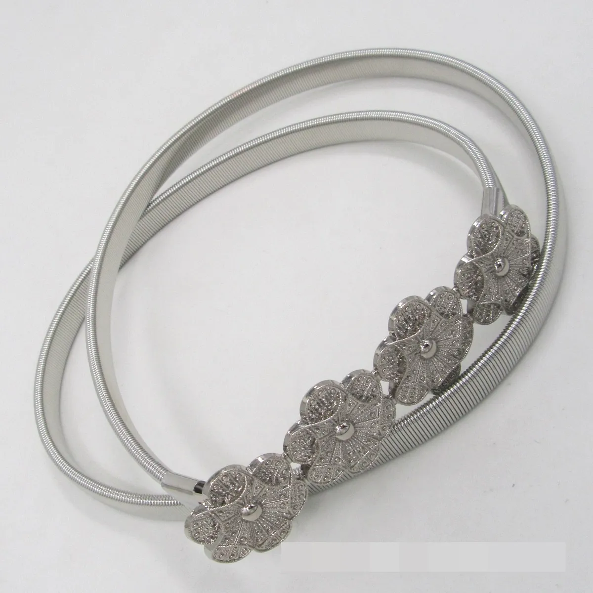 衣都精品- 新款時尚百搭小梅花金屬彈簧鬆緊腰腰帶