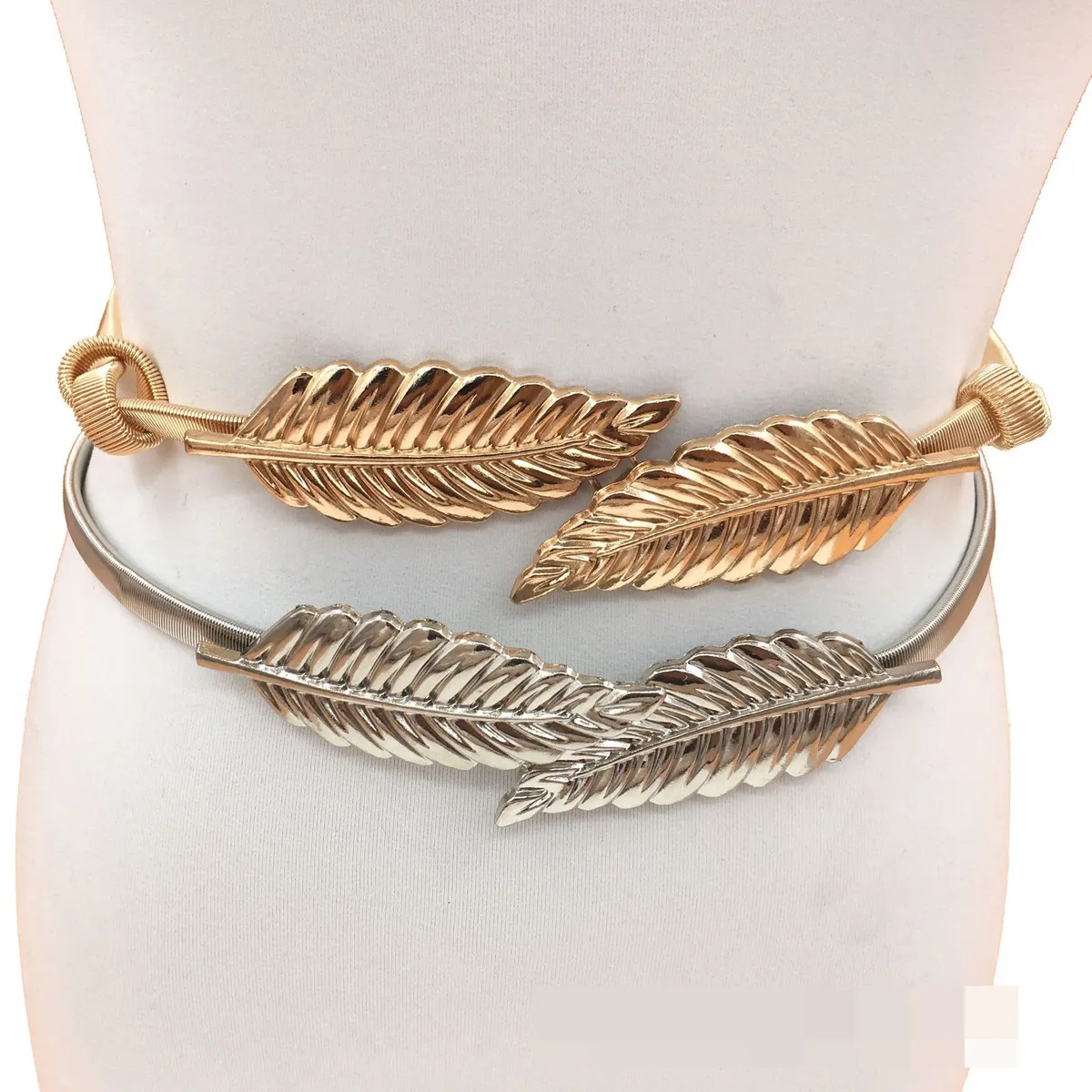 衣都精品- 新款楓樹葉對扣金屬彈簧鬆緊腰腰帶