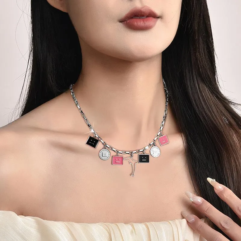 衣都精品- 新款時尚鈦鋼海豚笑臉錢幣吊墜項鍊