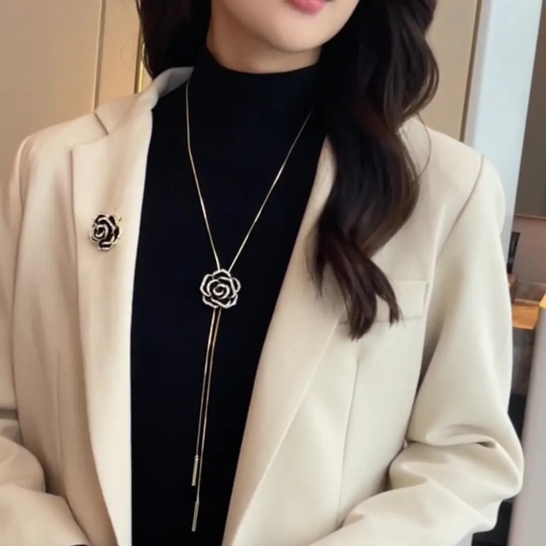 衣都精品- 新款時尚玫瑰花兩戴毛衣鏈項鍊