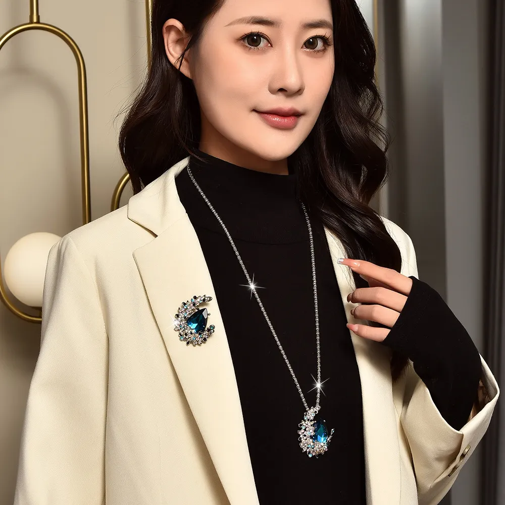 衣都精品- 新款時尚百搭水晶月亮兩戴毛衣鏈項鍊