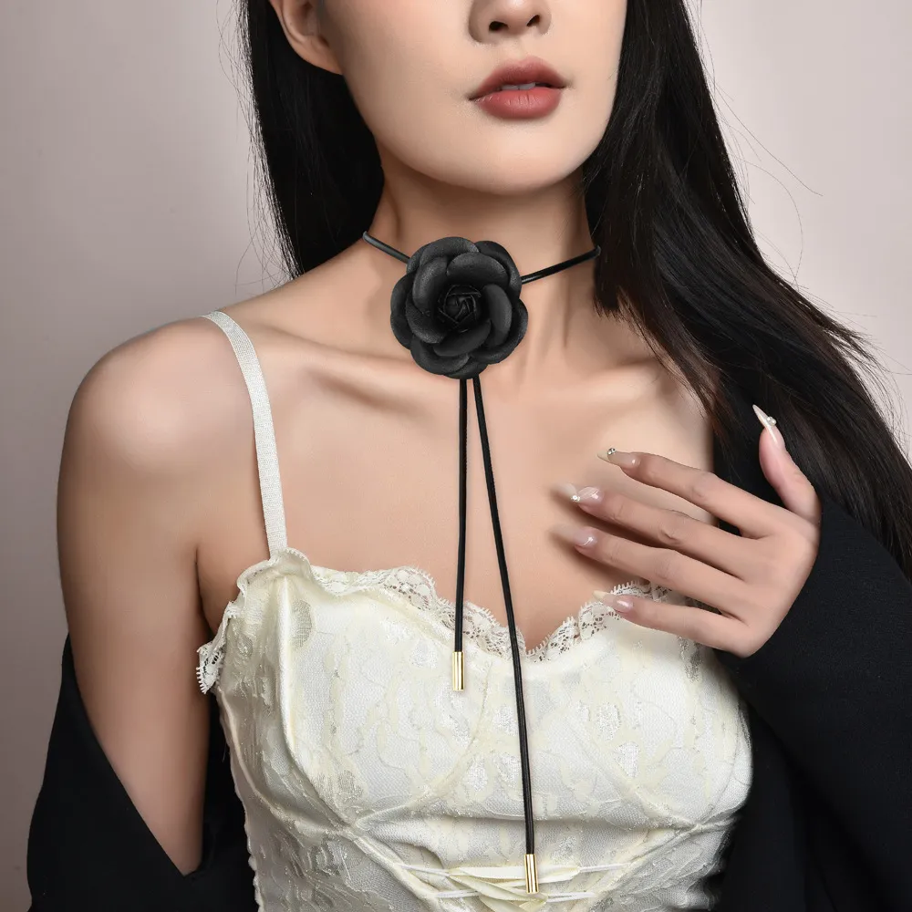 衣都精品- 新款時尚百搭小香風黑玫瑰花朵鎖骨鏈項鍊