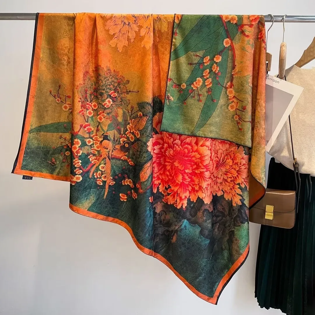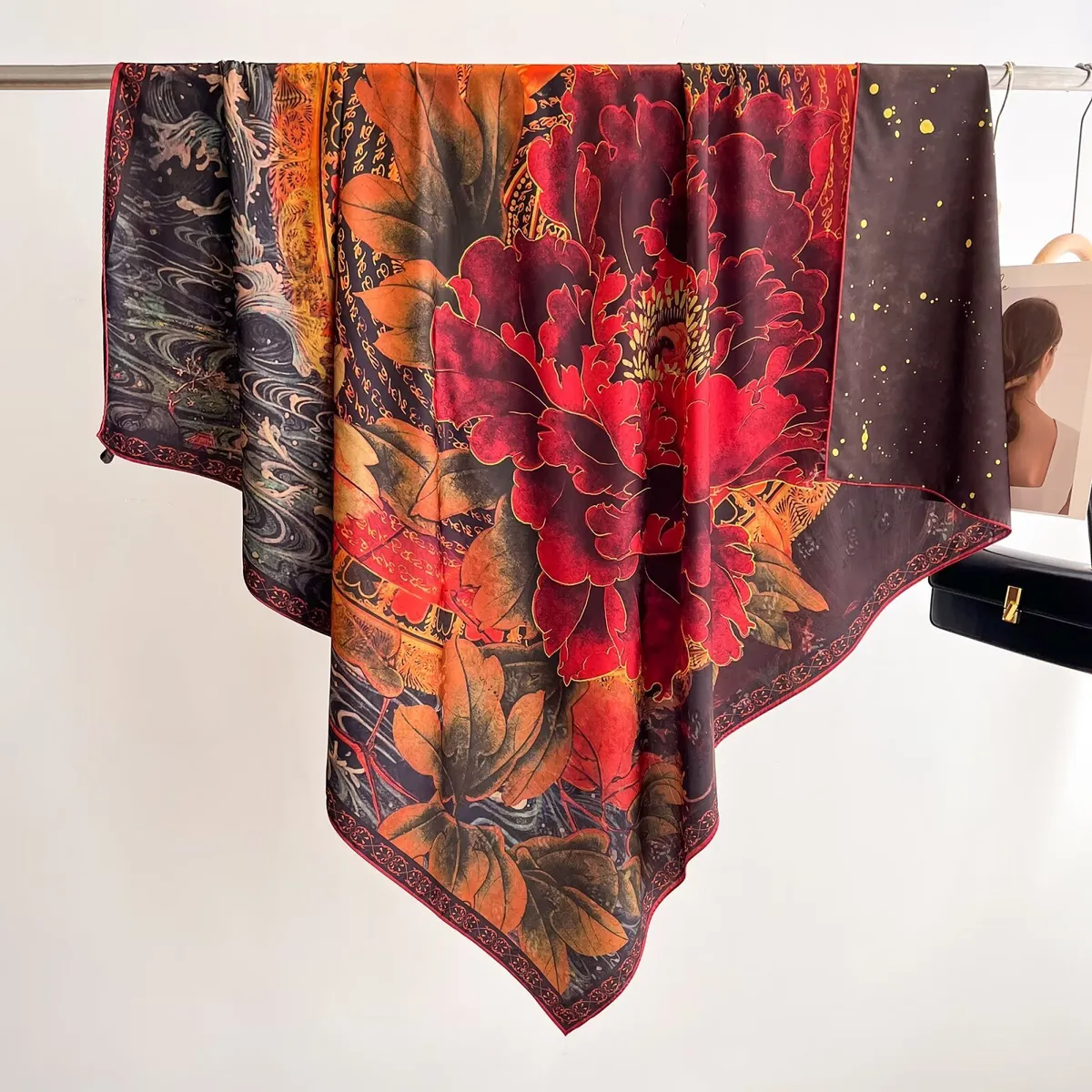 所售品名:圍巾 產品顏色 : 157-#柿子如意,160-#紫金唐卡,164-#百合花,165-#鳥語花香,168-#花好月圓,169-#百花齊放,170-#蝴蝶菊花,161-雙鳳呈祥,167-樸樹銀花,176-牡丹盛放 產品尺碼:均碼 主要成分 : 聚酯纖維