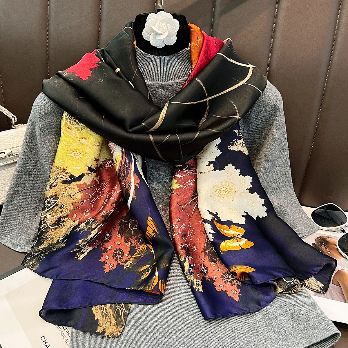衣都精品- 新款中國風花鳥圖長款印花絲巾