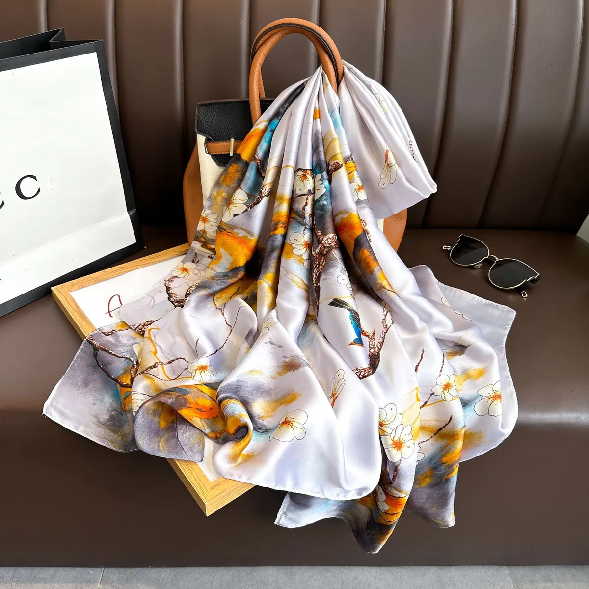 衣都精品- 新款素雅風喜上眉梢麗錦緞長款絲巾