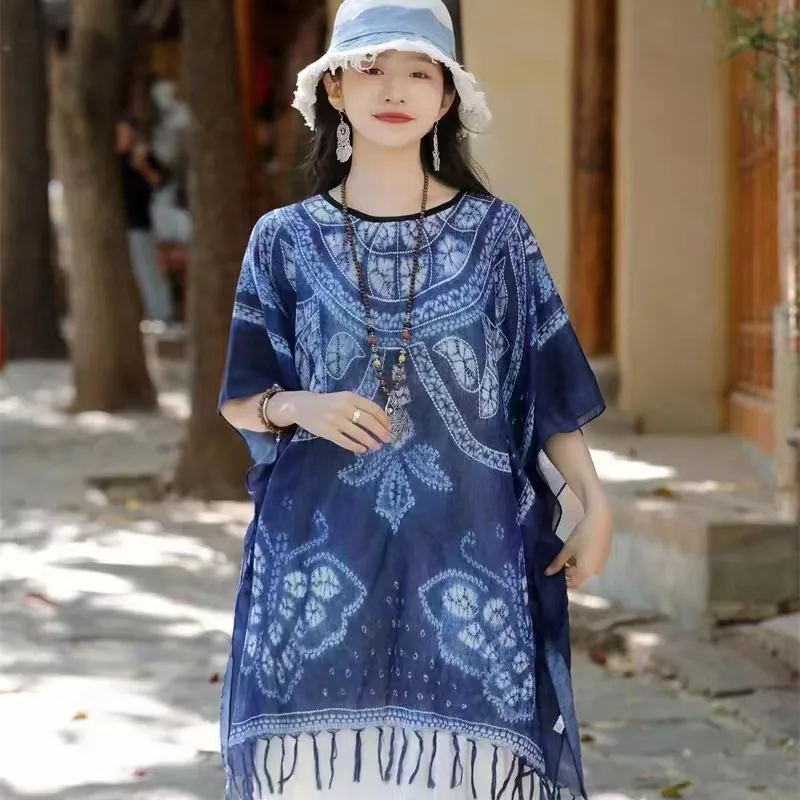 衣都精品- 新款復古紮染雲南麗江旅遊長款流蘇披肩