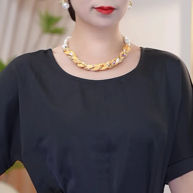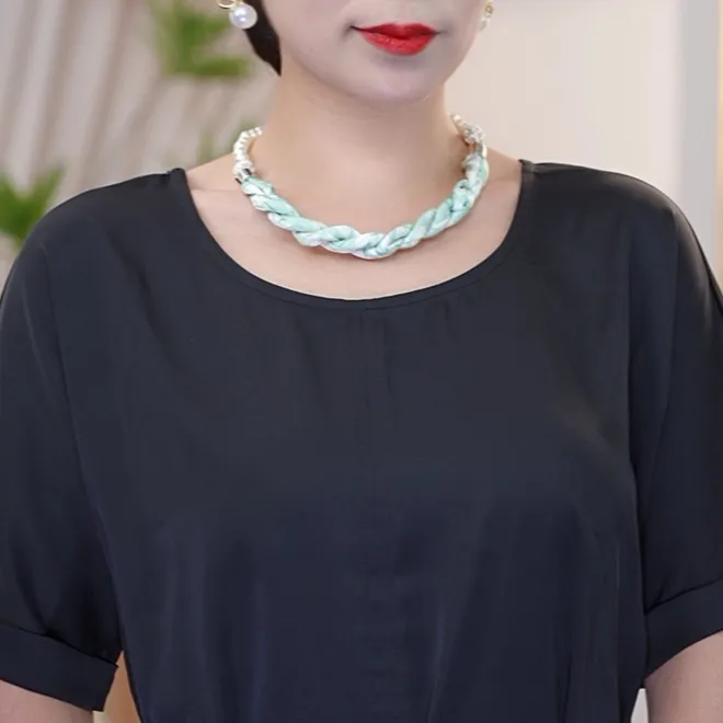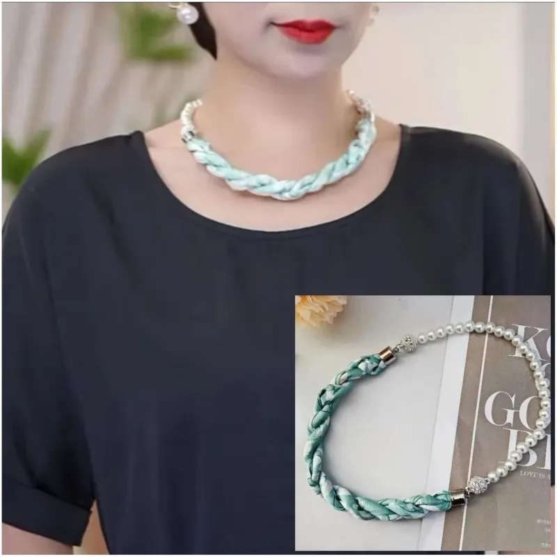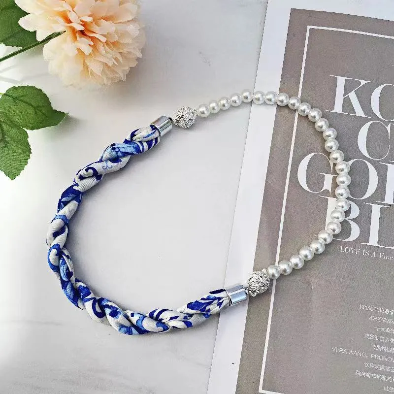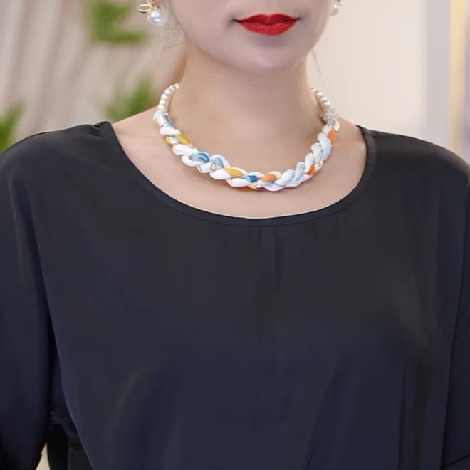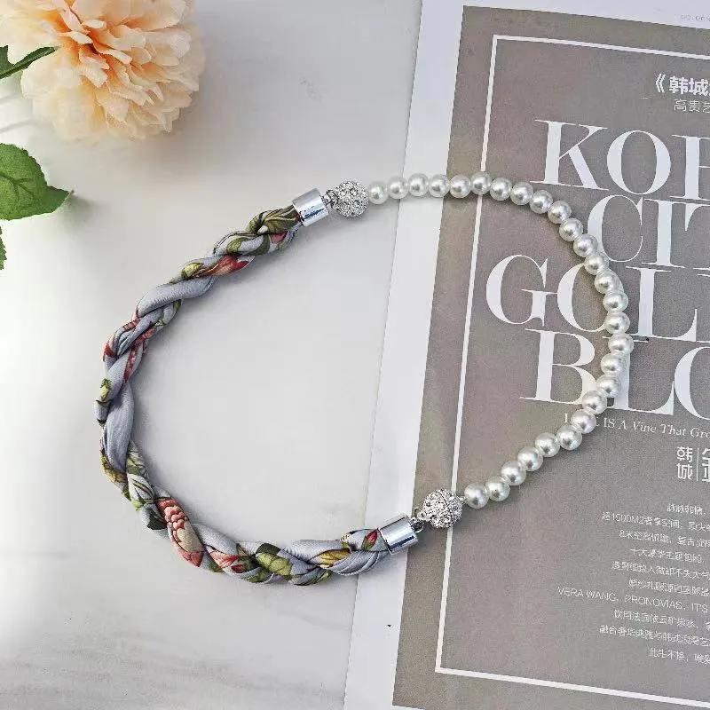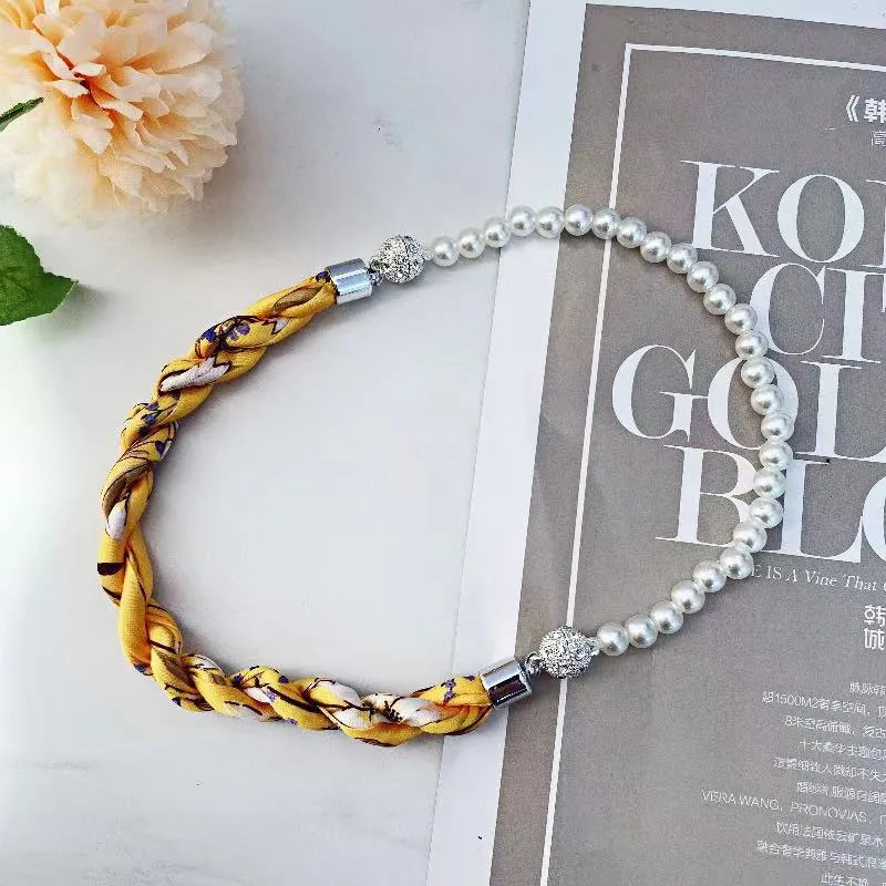 衣都精品- 新款時尚磁吸式可拆式貝珠鏈拼接小絲巾