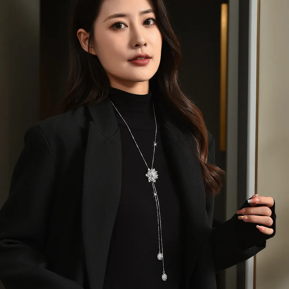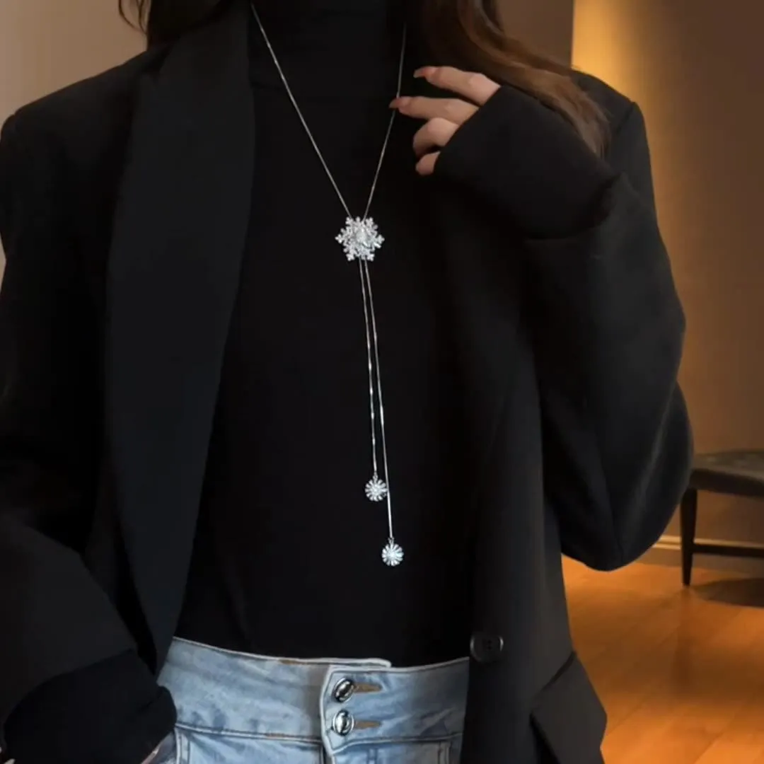 衣都精品- 新款時尚氣質旋轉流蘇雪花長款兩用胸針項鍊