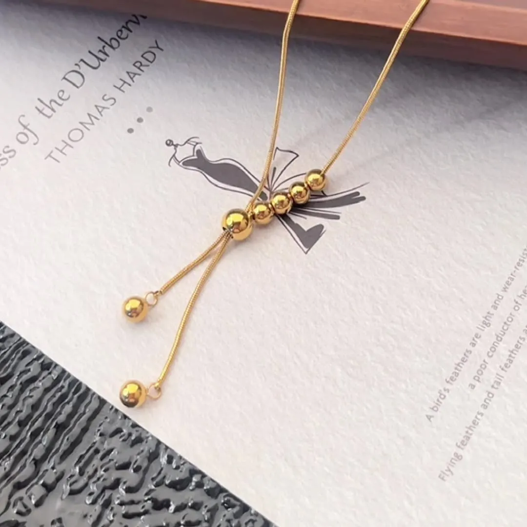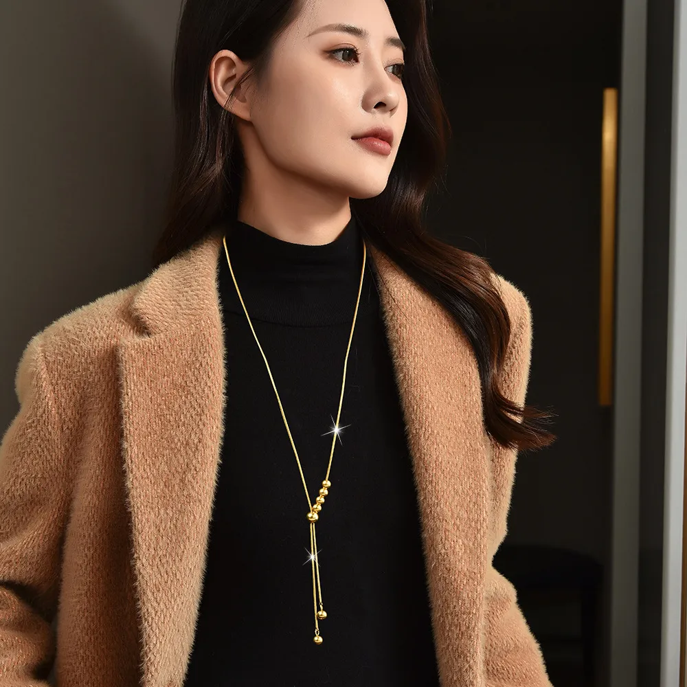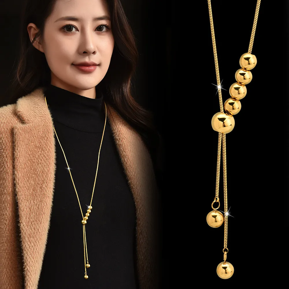 衣都精品- 新款時尚氣質抽拉鋼珠流蘇長款項鍊