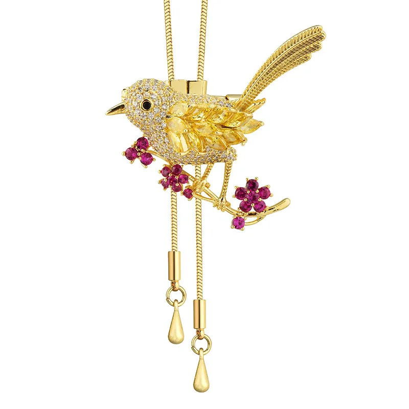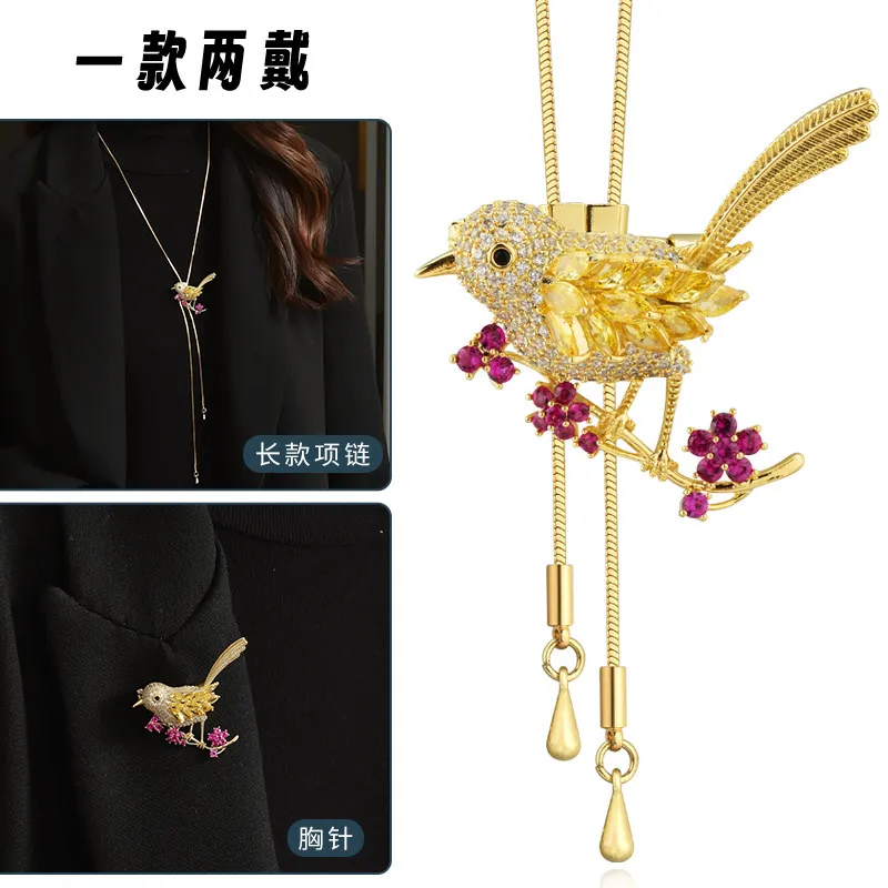 衣都精品- 新款民族風小鳥花朵百搭兩用胸針項鍊