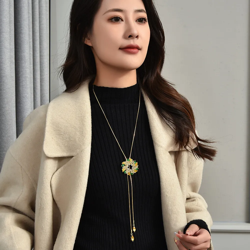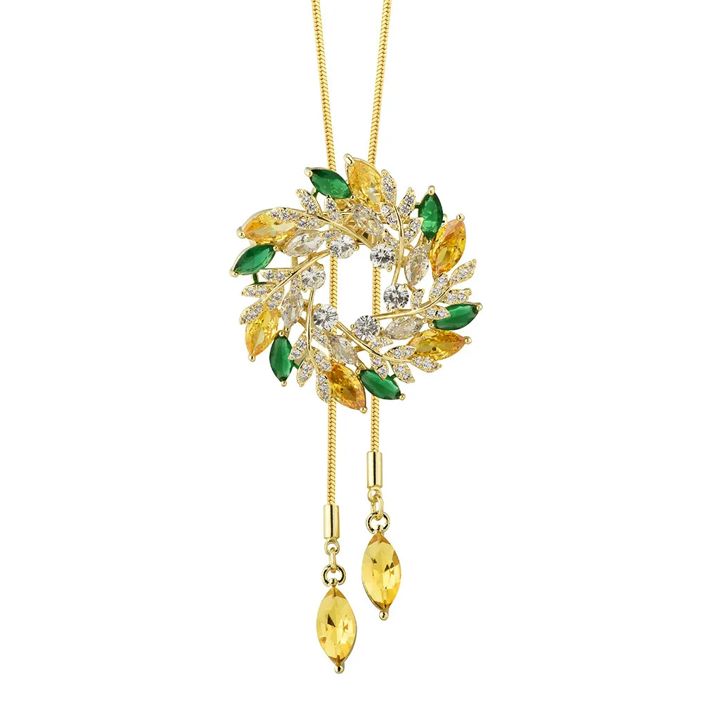 衣都精品- 新款時尚氣質珍珠葉子長款兩用胸針項鍊