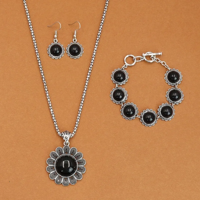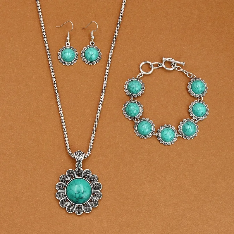 衣都精品- 新款民族風波西米亞松石項鍊+耳環+手環三件組