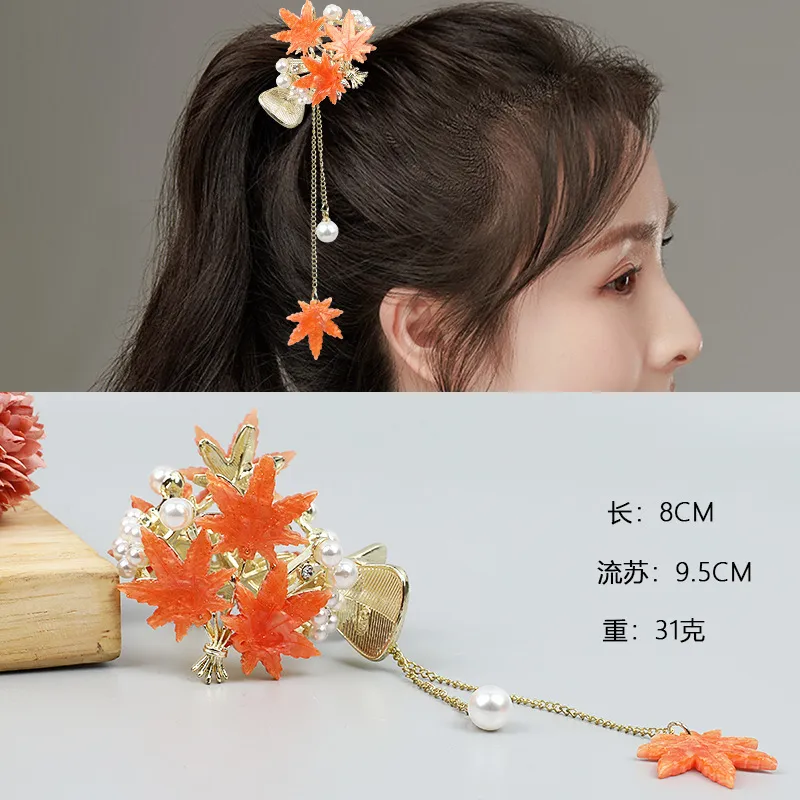 衣都精品- 新款輕奢設計感楓葉丸子頭髮夾