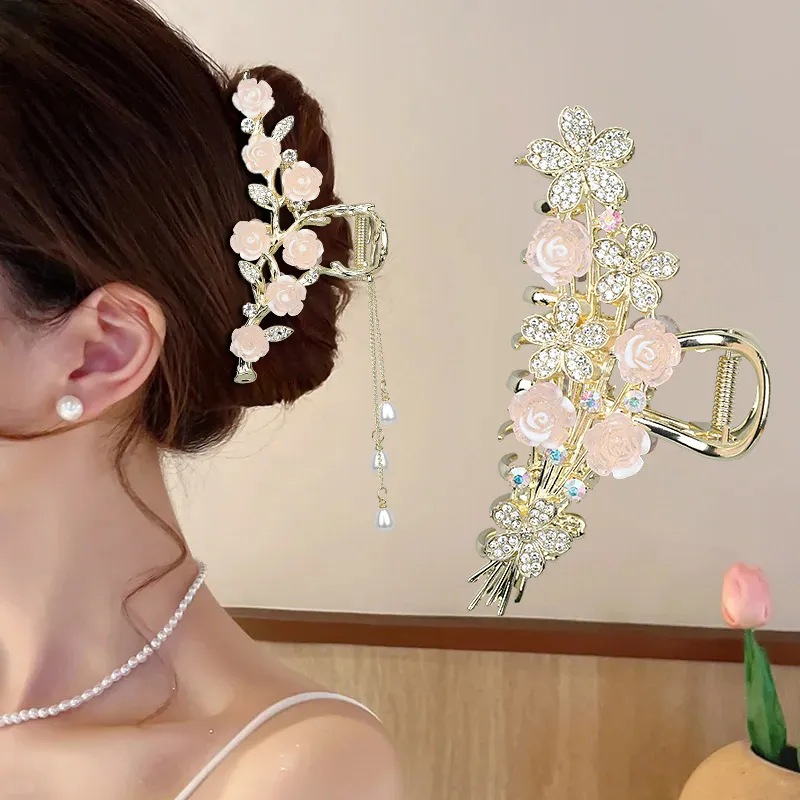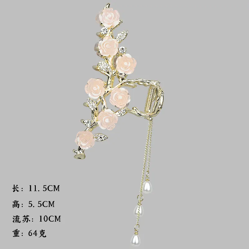 衣都精品- 新款玫瑰花系列金屬大鯊魚髮夾