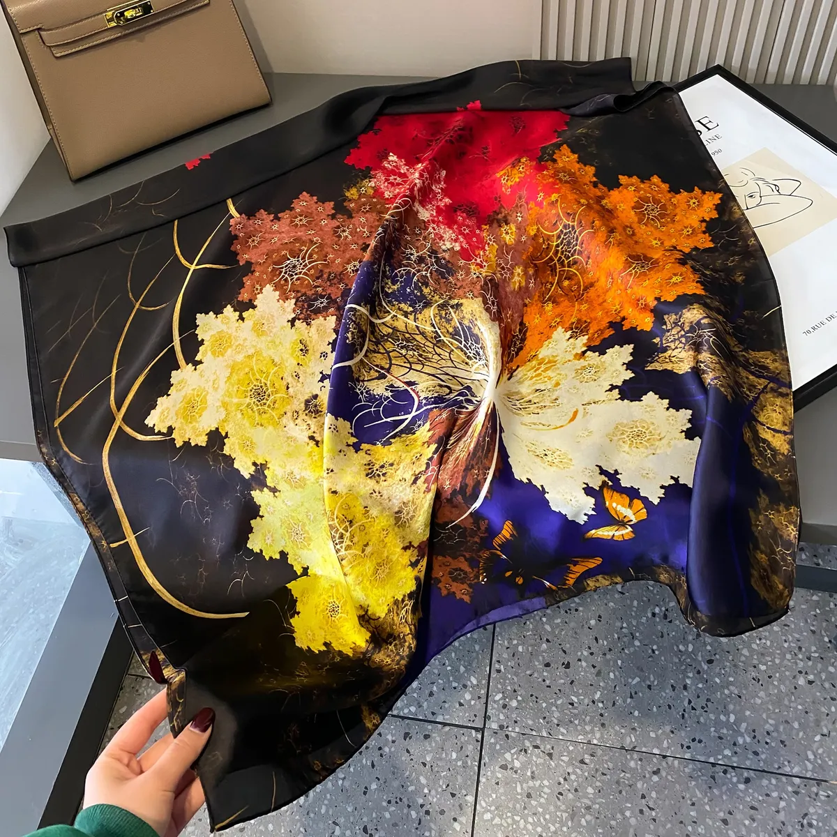 衣都精品- 新款文藝復古國風油畫麗錦緞長款絲巾