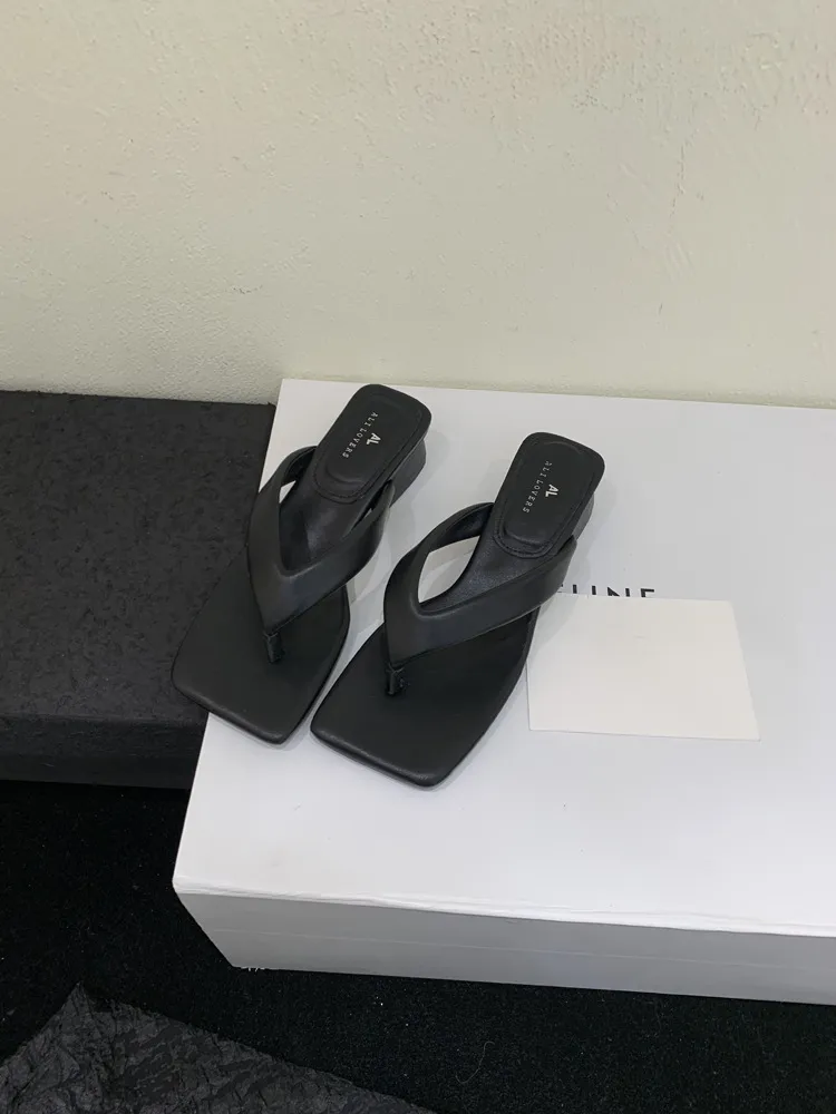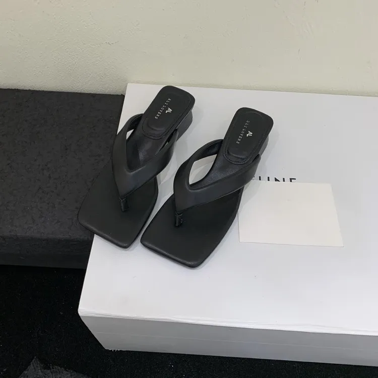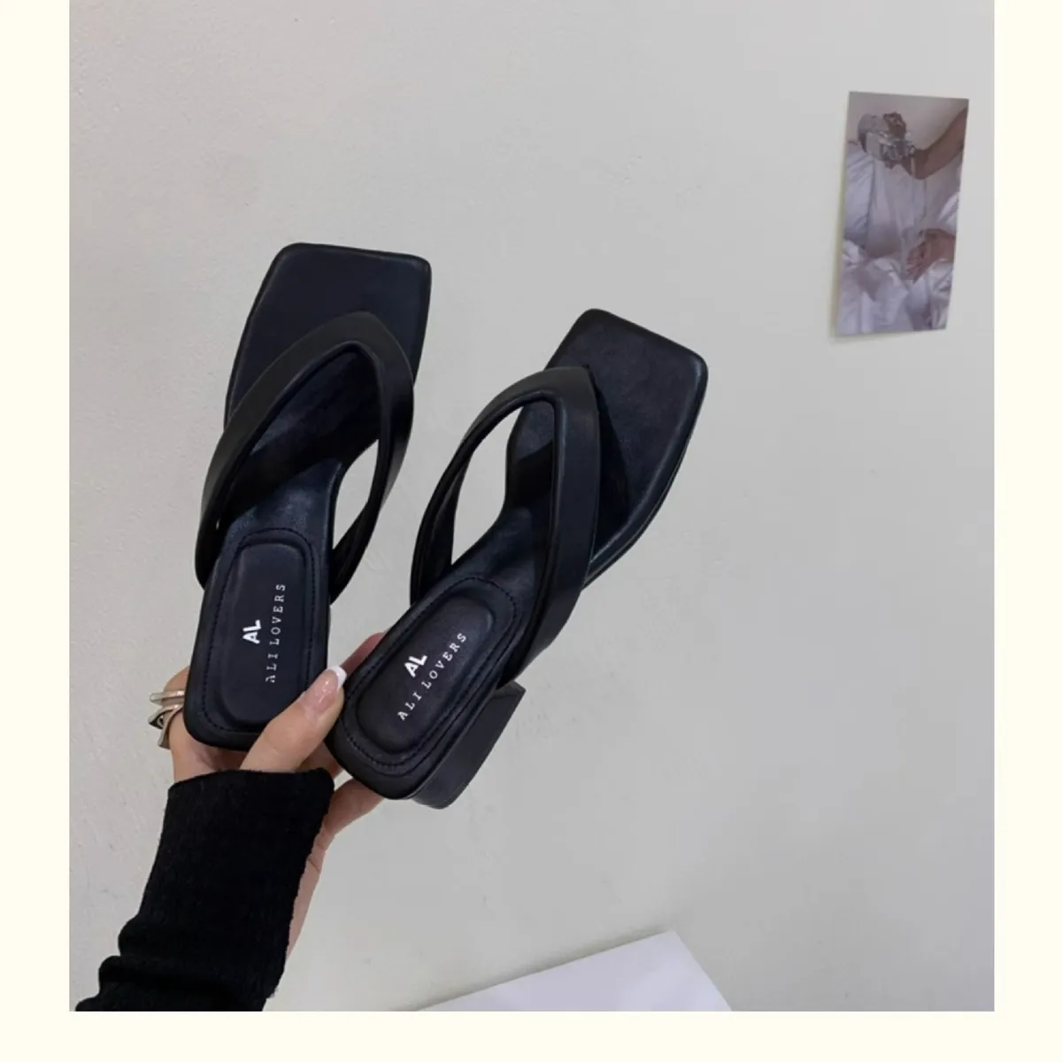 衣都精品- 新款法式粗跟夾趾人字拖鞋
