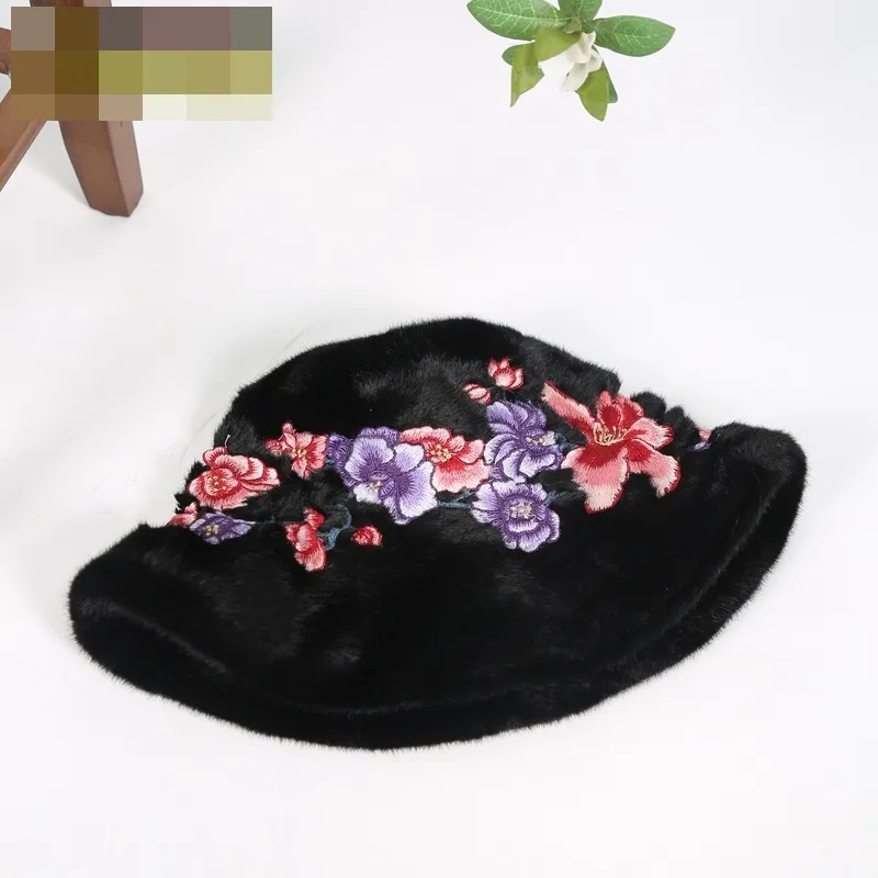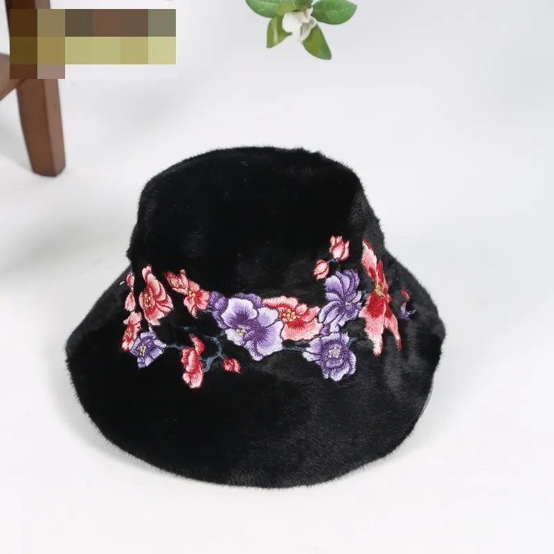 衣都精品- 新款民族風休閒毛絨刺繡保暖漁夫帽