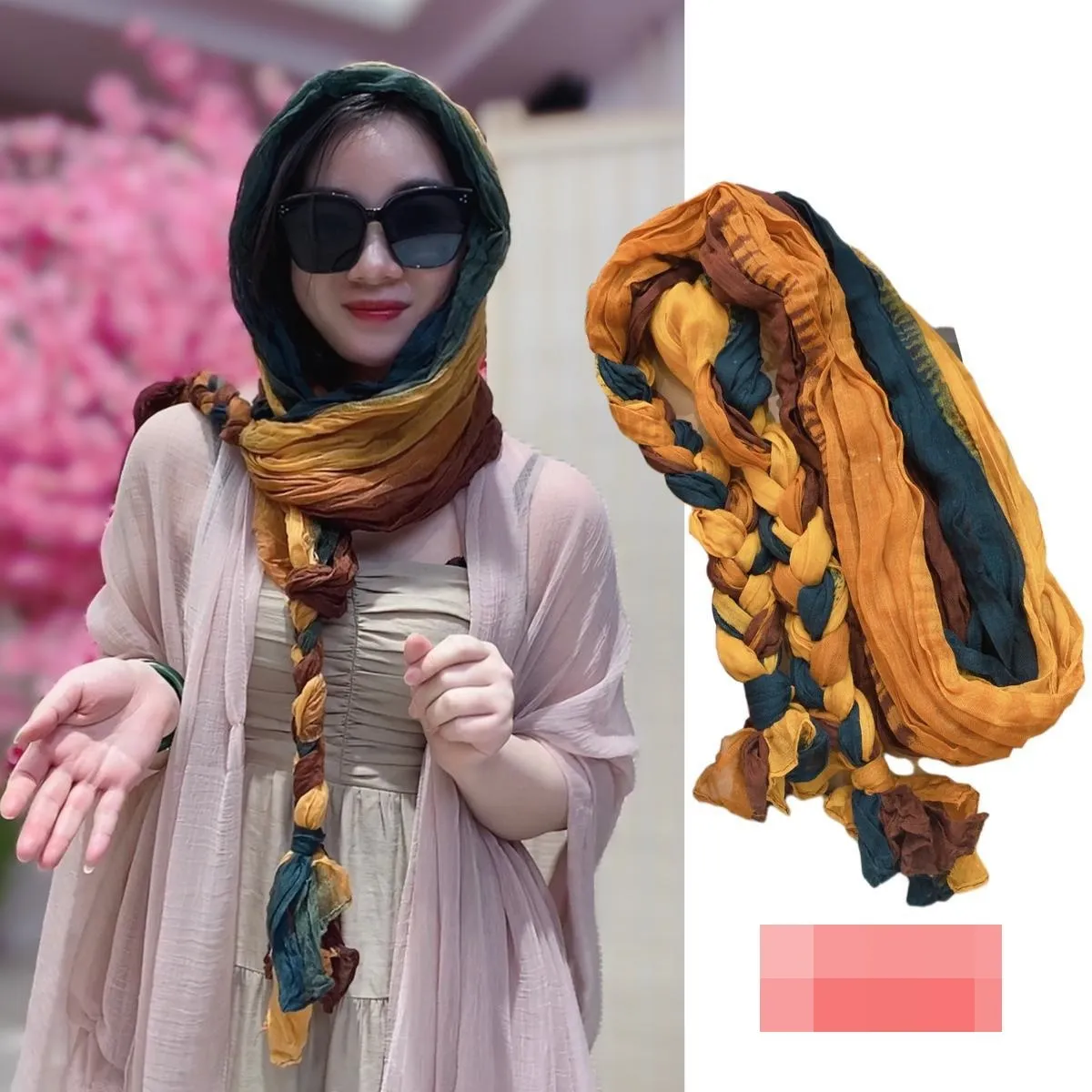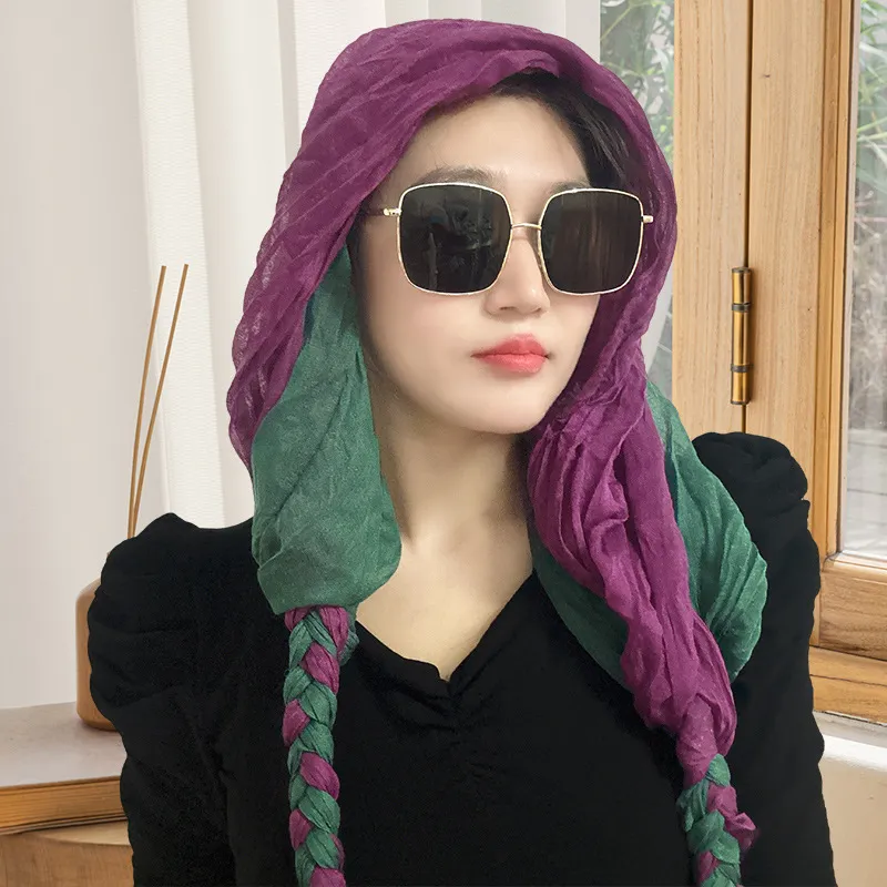衣都精品- 新款棉麻辮子頭巾防曬多用途包頭巾