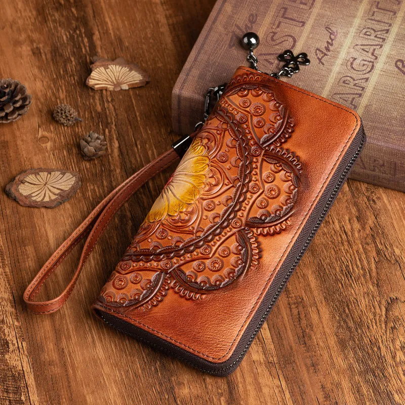 衣都精品- 新款植鞣皮拉鍊復古擦色手拿包